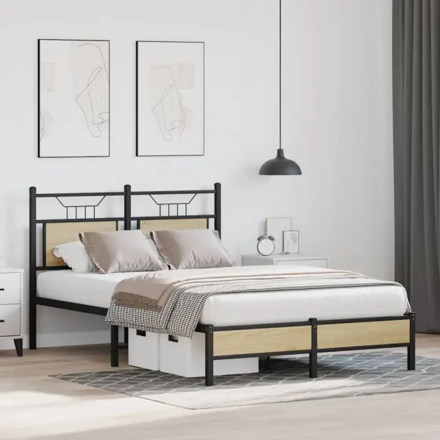 Zagotovite si boljši spanec s tem posteljnim okvirjem! Je prijeten dodatek za vsako spalnico. Stabilen in dolgotrajen okvir: Jeklo je močno, stabilno in trpežno, zato je idealna izbira za številne aplikacije, od proizvodnje pohištva do gradbeništva.Vsestransko vzglavje: Ta postelja je opremljena z vzglavjem, ki zagotavlja odlično oporo hrbtu, ko sedite v postelji in berete ali gledate televizijo, hkrati pa služi tudi kot dekorativni element.Dodaten prostor za shranjevanje: Za udobje ima posteljni podstavek pod seboj dodaten prostor, v katerem lahko shranite škatle za shranjevanje, ki niso vidne.Podnožje z letvami za optimalno podporo: Kovinski posteljni okvir je opremljen z letvenim dnom, ki zagotavlja oporo in zračnost ležišča. Dobro je vedeti:Vzmetnica ni priložena tej postelji. Ponujamo različno izbiro ležišč. V naši trgovini si lahko ogledate ustrezne vzmetnice.Barva: Sonoma hrastMaterial: Inženirski les in jekloCelotne dimenzije: 207 x 126 x 91,5 cm (D x Š x V)Višina prostora pod posteljo: 27 cmVelikost primerne vzmetnice: 120 x 200 cm (Š x D) (vzmetnica ni priložena)Z vzglavjemPotrebno sestavljanje: Da