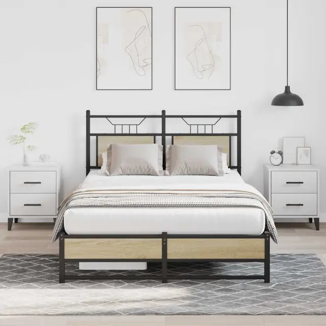Zagotovite si boljši spanec s tem posteljnim okvirjem! Je prijeten dodatek za vsako spalnico. Stabilen in dolgotrajen okvir: Jeklo je močno, stabilno in trpežno, zato je idealna izbira za številne aplikacije, od proizvodnje pohištva do gradbeništva.Vsestransko vzglavje: Ta postelja je opremljena z vzglavjem, ki zagotavlja odlično oporo hrbtu, ko sedite v postelji in berete ali gledate televizijo, hkrati pa služi tudi kot dekorativni element.Dodaten prostor za shranjevanje: Za udobje ima posteljni podstavek pod seboj dodaten prostor, v katerem lahko shranite škatle za shranjevanje, ki niso vidne.Podnožje z letvami za optimalno podporo: Kovinski posteljni okvir je opremljen z letvenim dnom, ki zagotavlja oporo in zračnost ležišča. Dobro je vedeti:Vzmetnica ni priložena tej postelji. Ponujamo različno izbiro ležišč. V naši trgovini si lahko ogledate ustrezne vzmetnice.Barva: Sonoma hrastMaterial: Inženirski les in jekloCelotne dimenzije: 207 x 126 x 91,5 cm (D x Š x V)Višina prostora pod posteljo: 27 cmVelikost primerne vzmetnice: 120 x 200 cm (Š x D) (vzmetnica ni priložena)Z vzglavjemPotrebno sestavljanje: Da