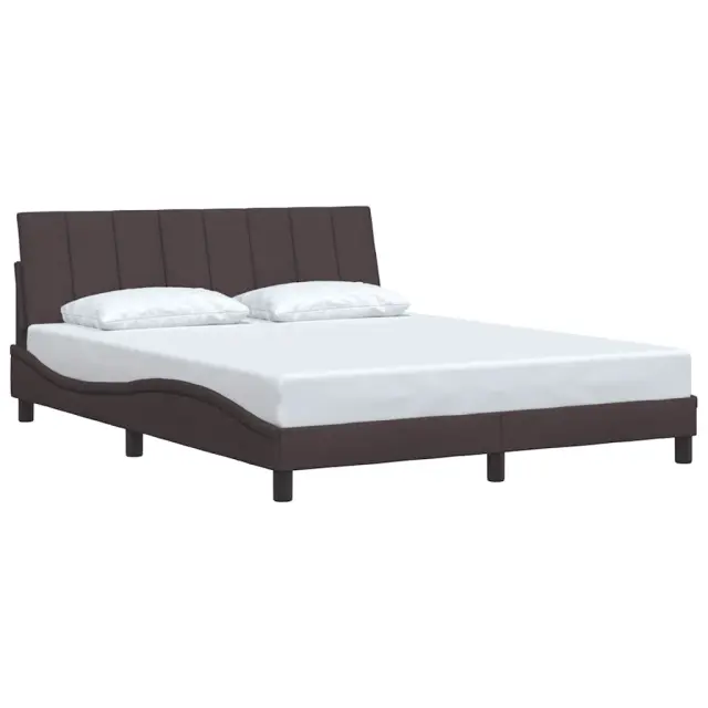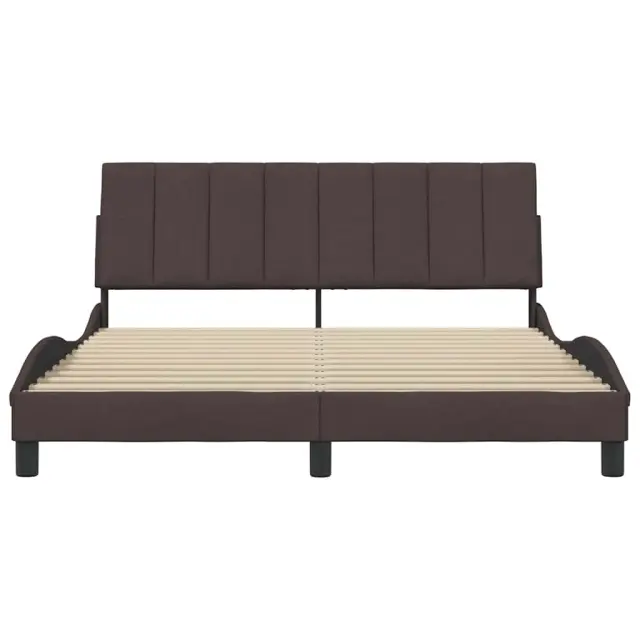 Zagotovite si boljši spanec s tem posteljnim okvirjem! Je prijeten dodatek za vsako spalnico. Mehak in trpežen material: Tkanina iz poliestra ponuja kombinacijo mehkobe, zračnosti in trpežnosti ter vam zagotavlja popolno udobje in prijetnost.Letvice za optimalno podporo: Ta posteljni okvir je opremljen z letvicami, ki zagotavljajo osnovno podporo in zračnost vašega ležišča.Vsestransko vzglavje: Ta posteljni okvir je opremljen z vzglavjem, ki zagotavlja odlično oporo hrbtu, ko sedite v postelji in berete ali gledate televizijo, hkrati pa služi tudi kot dekorativni element.Priročna zasnova: Vzglavna stranica ima zadrgo za preprosto namestitev, pripenjala na zadnji strani pa se lahko uporabijo za pritrditev LED lučk.Valovita stranica: Valoviti videz posteljnega okvirja je eleganten in prefinjen. Dekorju v vašem domu dodaja sodoben in eleganten pridih ter tako postane osrednja točka spalnice. Dobro je vedeti:Vzmetnica ni priložena tej postelji. Ponujamo različno izbiro ležišč. V naši trgovini si lahko ogledate ustrezne vzmetnice.Posteljni okvir:Barva: Temno rjavaMaterial: Tkanina (100 % poliester), kovina, vezan les, inženirski lesCelotne dimenzije: 218 x 165 x 74,5 cm (D x Š x V)Velikost primerne vzmetnice: 160 x 200 cm (Š x D) (vzmetnica ni priložena)Oblazinjeno vzglavje:Barva: Temno rjavaMaterial: Blago (100 % poliester)Material polnila: PP vlaknaDimenzije: 160 x 3 x 45 cm (D x Š x V)Paket vsebuje:1 x Posteljni okvir1 x Oblazinjeno vzglavje