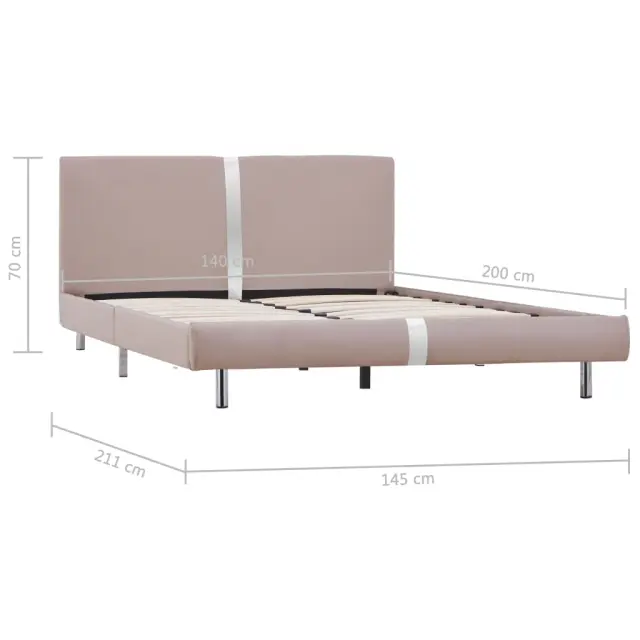 Ta klasičen posteljni okvir bo postal ključna točka vaše spalnice. Ta posteljni okvir je prepoznaven po svojem preprostem in elegantnem dizajnu, zato bo dekorju v vaši spalnici dodal pridih elegantnega šarma. Izdelan je iz železa s prašnim premazom, vezanega lesa in mediapana, zato je ta posteljni okvir precej trden in trpežen. Jeklene noge prispevajo k dodatni trpežnosti postelje. Poleg tega je postelja oblečena v trpežno umetno usnje, zato je zelo lepa in preprosta za čiščenje. Ta posteljni okvir je primeren za vzmetnico velikosti 140 x 200 cm. Upoštevajte, da paket vsebuje samo posteljni okvir; vzmetnica ni priložena. Postelja je preprosta za sestavo. V naši trgovini si lahko ogledate ujemajočo vzmetnico.Barva: KapučinoMaterial: Železen okvir s prašnim premazom + mediapan + jeklene nogeMaterial vzglavja: Mediapan + umetno usnjeCelotne dimenzije: 211 x 145 x 70 cm (D x Š x V)Velikost primerne vzmetnice: 140 x 200 cm (Š x D) (vzmetnica ni priložena)Spalna višina, merjena od tal: 23 cm