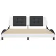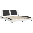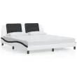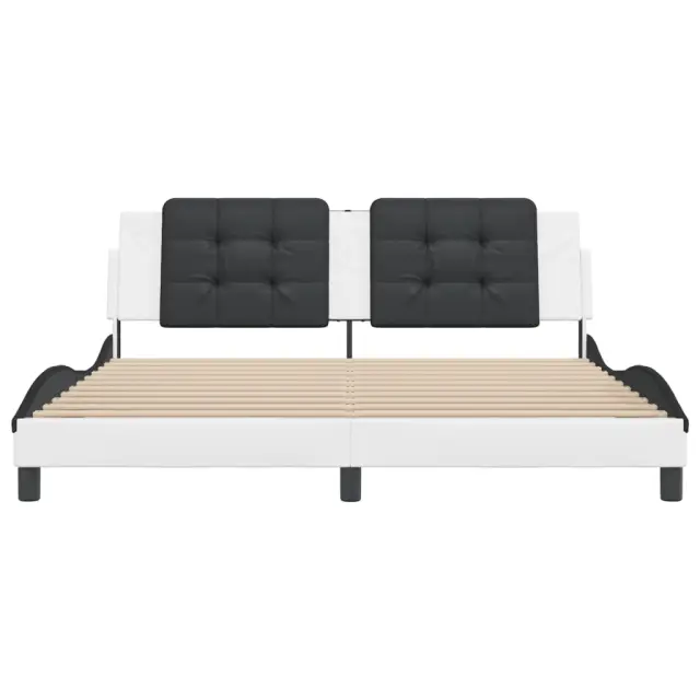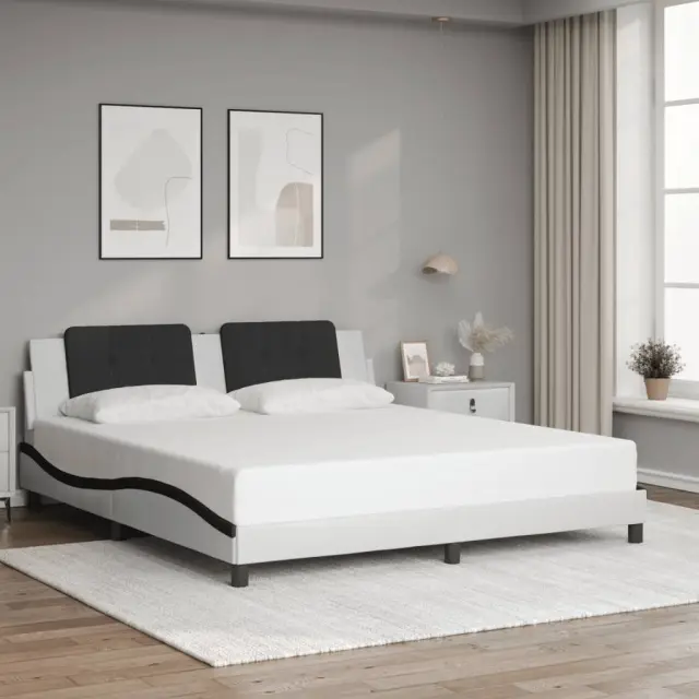 Zagotovite si boljši spanec s tem posteljnim okvirjem z vzglavjem! Je prijeten dodatek za vsako spalnico. Trpežno umetno usnje: Vrhunsko umetno usnje je zelo vzdržljiv material. Je odporno na madeže, zato ga lahko preprosto čistite z vlažno krpo. Gladka površina mu prav tako daje razkošen videz in lepoto pravega usnja.Letvice iz vezanega lesa: Letvice iz vezanega lesa omogočajo dobro porazdelitev teže in zagotavljajo, da vzmetnica ostane na mestu ob vsakem zasuku in obračanju med spanjem.Odlična podpora: Vzglavna stranica je napolnjena s peno za izjemno mehkobo in optimalno udobje ter zagotavlja odlično podporo hrbtu, ko sedite v postelji in berete ali gledate televizijo.Priročna zasnova: Oblazinjeno vzglavje ima zadrgo za enostavno namestitev.Valovita stranica: Valoviti videz posteljnega okvirja je eleganten in prefinjen. Dekorju v vašem domu dodaja sodoben in eleganten pridih ter tako postane osrednja točka spalnice. Dobro je vedeti:Vzmetnica ni priložena tej postelji. Ponujamo različno izbiro ležišč. V naši trgovini si lahko ogledate ustrezne vzmetnice.Posteljni okvir z vzglavjem:Barva: Bela in črnaMaterial: Umetno usnje (75 % polivinilklorid, 5 % bombaž, 20 % poliester), kovina, trdna borovina, vezan lesCelotne dimenzije: 218 x 185 x 74,5 cm (D x Š x V)Velikost primerne vzmetnice: 180 x 200 cm (Š x D) (vzmetnica ni priložena)Oblazinjeno vzglavje:Barva: Črna in belaMaterial: Umetno usnje (75 % polivinilklorid, 5 % bombaž, 20 % poliester)Material polnila: PenaDimenzije: 180 x 3 x 48 cm (D x Š x V)Širina primerne vzmetnice: 180 cmPotrebno sestavljanje: DaPaket vsebuje:1 x Posteljni okvir z vzglavjem1 x Oblazinjeno vzglavje