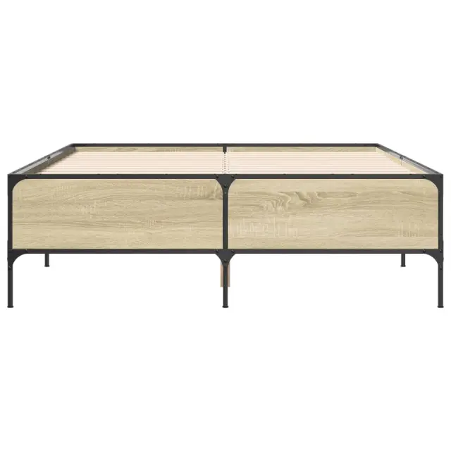 Zagotovite si boljši spanec s tem posteljnim okvirjem! Je prijeten dodatek za vsako spalnico. Vzdržljiv material: Inženirski les se ponaša z izjemno kakovostjo, gladko površino ter močjo, stabilnostjo in odpornostjo na vlago. Kovinske noge: Postelja je podprta s čvrstimi kovinskimi nogami, ki zagotavljajo njeno stabilnost, varnost in trdnost. Letvice iz vezanega lesa: Letvice iz vezanega lesa omogočajo dobro porazdelitev teže in zagotavljajo, da vzmetnica ostane na mestu ob vsakem zasuku in obračanju med spanjem. Dobro je vedeti: Vzmetnica ni priložena tej postelji. Ponujamo različno izbiro ležišč. V naši trgovini si lahko ogledate ustrezne vzmetnice.Barva: Sonoma hrastMaterial: Inženirski les, jekloCelotne dimenzije: 203 x 153 x 44 cm (D x Š x V)Velikost primerne vzmetnice: 150 x 200 cm (Š x D) (vzmetnica ni priložena)Potrebno sestavljanje: Da