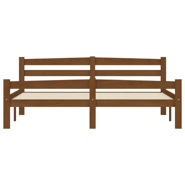 S tem brezčasnim posteljnim okvirjem iz trdnega lesa lahko na moderen način ustvarite odlično spalnico! To je praktičen in okrasen dodatek za vaše notranje prostore. Postelja ima trdno konstrukcijo iz trdne borovine, zato je močna in stabilna. Močne letvice iz borovine ponujajo potrebno podporo in udobje. Prosimo, upoštevajte, da paket vsebuje samo posteljni okvir; vzmetnica ni priložena. V naši trgovini si lahko ogledate primerno vzmetnico.Barva: Medeno rjavaMaterial: Trdna borovina, vezan lesDimenzije: 206 x 166 x 66 cm (D x Š x V)Velikost primerne vzmetnice: 160 x 200 cm (Š x D) (vzmetnica ni priložena)Spalna višina, merjena od tal: 32 cmPotrebno sestavljanje: Da