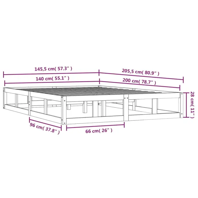Ustvarite moderno spalnico s tem lesenim posteljnim okvirjem! To je praktičen in dekorativen dodatek za vaše notranje prostore. Vrhunska trdna borovina: Trdna borovina je čudovit naravni material. Borovina ima ravne vzorce, grče pa dajejo materialu njegov značilen, rustikalen videz.Stabilen posteljni okvir: Lesen okvir zagotavlja trdnost in stabilnost.Trdne letvice: Letvice iz vezanega lesa omogočajo dobro porazdelitev teže in zagotavljajo, da vzmetnica ostane na mestu ob vsakem zasuku in obračanju med spanjem. Opomba:Paket vsebuje samo posteljni okvir. Vzmetnica ni priložena. V naši trgovini si lahko ogledate ustrezne vzmetnice.Ta posteljni okvir je primeren za vzmetnico velikosti 140 x 200 cm.Vsakemu izdelku je priložen priročnik za enostavno sestavljanje.Material posteljnega okvirja: Trdna borovina (neobdelana)Material letvic: Vezan lesCelotne dimenzije: 205,5 x 145,5 x 28 cm (D x Š x V)Velikost primerne vzmetnice: 140 x 200 cm (Š x D) (vzmetnica ni priložena)