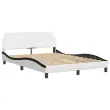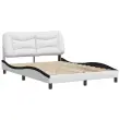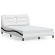 Zagotovite si boljši spanec s tem posteljnim okvirjem z vzglavjem! Je prijeten dodatek za vsako spalnico. Trpežno umetno usnje: Vrhunsko umetno usnje je zelo vzdržljiv material. Je odporno na madeže, zato ga lahko preprosto čistite z vlažno krpo. Gladka površina mu prav tako daje razkošen videz in lepoto pravega usnja.Letvice iz vezanega lesa: Letvice iz vezanega lesa omogočajo dobro porazdelitev teže in zagotavljajo, da vzmetnica ostane na mestu ob vsakem zasuku in obračanju med spanjem.Odlična podpora: Vzglavna stranica je napolnjena s PP vlakni za izjemno mehkobo in optimalno udobje ter zagotavlja odlično podporo hrbtu, ko sedite v postelji in berete ali gledate televizijo.Valovita stranica: Valoviti videz posteljnega okvirja je eleganten in prefinjen. Dekorju v vašem domu dodaja sodoben in eleganten pridih ter tako postane osrednja točka spalnice. Dobro je vedeti:Vzmetnica ni priložena tej postelji. Ponujamo različno izbiro ležišč. V naši trgovini si lahko ogledate ustrezne vzmetnice.Posteljni okvir z vzglavjem:Barva: Bela in črnaMaterial: Umetno usnje (75 % polivinilklorid, 5 % bombaž, 20 % poliester), kovina, trdna borovina, vezan lesCelotne dimenzije: 208 x 145 x 74,5 cm (D x Š x V)Velikost primerne vzmetnice: 140 x 190 cm (Š x D) (vzmetnica ni priložena)Oblazinjeno vzglavje:Barva: BelaMaterial: Umetno usnje (75 % polivinilklorid, 5 % bombaž, 20 % poliester)Material polnila: PP vlaknaDimenzije: 150 x 15 x 48 cm (D x Š x V)Primerna širina vzmetnice: 140 cmPotrebno sestavljanje: DaPaket vsebuje:1 x Posteljni okvir z vzglavjem1 x Oblazinjeno vzglavje