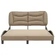 Zagotovite si boljši spanec s tem posteljnim okvirjem z vzglavjem! Je prijeten dodatek za vsako spalnico. Trpežno umetno usnje: Vrhunsko umetno usnje je zelo vzdržljiv material. Je odporno na madeže, zato ga lahko preprosto čistite z vlažno krpo. Gladka površina mu prav tako daje razkošen videz in lepoto pravega usnja.Letvice iz vezanega lesa: Letvice iz vezanega lesa omogočajo dobro porazdelitev teže in zagotavljajo, da vzmetnica ostane na mestu ob vsakem zasuku in obračanju med spanjem.Odlična podpora: Vzglavna stranica je napolnjena s PP vlakni za izjemno mehkobo in optimalno udobje ter zagotavlja odlično podporo hrbtu, ko sedite v postelji in berete ali gledate televizijo.Valovita stranica: Valoviti videz posteljnega okvirja je eleganten in prefinjen. Dekorju v vašem domu dodaja sodoben in eleganten pridih ter tako postane osrednja točka spalnice. Dobro je vedeti:Vzmetnica ni priložena tej postelji. Ponujamo različno izbiro ležišč. V naši trgovini si lahko ogledate ustrezne vzmetnice.Posteljni okvir z vzglavjem:Barva: KapučinoMaterial: Umetno usnje (75 % polivinilklorid, 5 % bombaž, 20 % poliester), kovina, trdna borovina, vezan lesCelotne dimenzije: 218 x 145 x 74,5 cm (D x Š x V)Velikost primerne vzmetnice: 140 x 200 cm (Š x D) (vzmetnica ni priložena)Oblazinjeno vzglavje:Barva: KapučinoMaterial: Umetno usnje (75 % polivinilklorid, 5 % bombaž, 20 % poliester)Material polnila: PP vlaknaDimenzije: 150 x 15 x 48 cm (D x Š x V)Primerna širina vzmetnice: 140 cmPotrebno sestavljanje: DaPaket vsebuje:1 x Posteljni okvir z vzglavjem1 x Oblazinjeno vzglavje