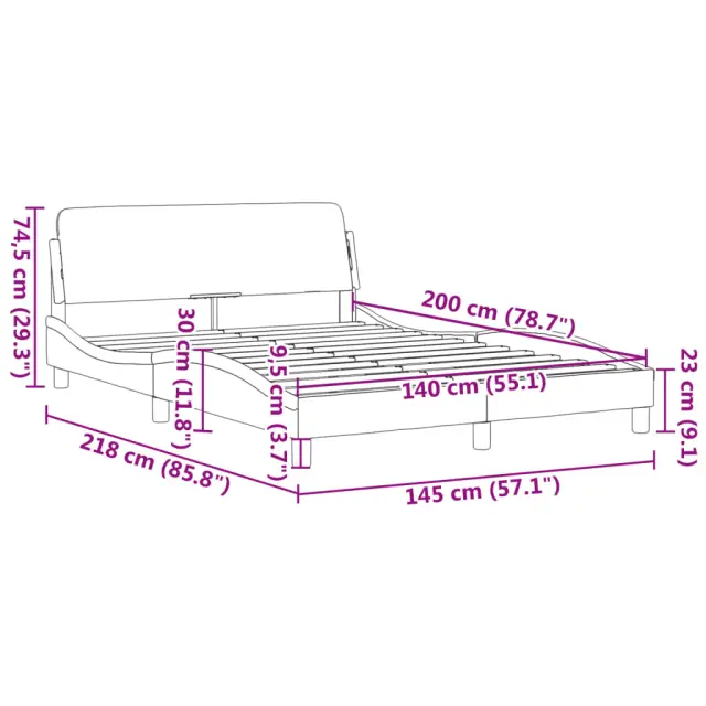 Zagotovite si boljši spanec s tem posteljnim okvirjem z vzglavjem! Je prijeten dodatek za vsako spalnico. Trpežno umetno usnje: Vrhunsko umetno usnje je zelo vzdržljiv material. Je odporno na madeže, zato ga lahko preprosto čistite z vlažno krpo. Gladka površina mu prav tako daje razkošen videz in lepoto pravega usnja.Podporne noge: Postelja je podprta s čvrstimi nogami, ki zagotavljajo njeno stabilnost, varnost in trdnost.Letvice iz vezanega lesa: Letvice iz vezanega lesa omogočajo dobro porazdelitev teže in zagotavljajo, da vzmetnica ostane na mestu ob vsakem zasuku in obračanju med spanjem.Udobna opora: To vzglavje za posteljo vam zagotavlja odlično oporo za hrbet, ko sedite na postelji in berete ali gledate filme.Valovita stranica: Valoviti videz posteljnega okvirja je eleganten in prefinjen. Dekorju v vašem domu dodaja sodoben in eleganten pridih ter tako postane osrednja točka spalnice. Dobro je vedeti:Vzmetnica ni priložena tej postelji. Ponujamo različno izbiro ležišč. V naši trgovini si lahko ogledate ustrezne vzmetnice.Barva: KapučinoMaterial: Umetno usnje (75 % polivinilklorid, 5 % bombaž, 20 % poliester), kovina, trdna borovina, vezan lesCelotne dimenzije: 218 x 145 x 74,5 cm (D x Š x V)Velikost primerne vzmetnice: 140 x 200 cm (Š x D) (vzmetnica ni priložena)Potrebno sestavljanje: Da