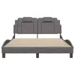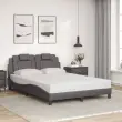 Zagotovite si boljši spanec s tem posteljnim okvirjem z vzglavjem! Je prijeten dodatek za vsako spalnico. Trpežno umetno usnje: Vrhunsko umetno usnje je zelo vzdržljiv material. Je odporno na madeže, zato ga lahko preprosto čistite z vlažno krpo. Gladka površina mu prav tako daje razkošen videz in lepoto pravega usnja.Letvice iz vezanega lesa: Letvice iz vezanega lesa omogočajo dobro porazdelitev teže in zagotavljajo, da vzmetnica ostane na mestu ob vsakem zasuku in obračanju med spanjem.Odlična podpora: Vzglavna stranica je napolnjena s peno za izjemno mehkobo in optimalno udobje ter zagotavlja odlično podporo hrbtu, ko sedite v postelji in berete ali gledate televizijo.Valovita stranica: Valoviti videz posteljnega okvirja je eleganten in prefinjen. Dekorju v vašem domu dodaja sodoben in eleganten pridih ter tako postane osrednja točka spalnice. Dobro je vedeti:Vzmetnica ni priložena tej postelji. Ponujamo različno izbiro ležišč. V naši trgovini si lahko ogledate ustrezne vzmetnice.Posteljni okvir z vzglavjem:Barva: SivaMaterial: Umetno usnje (75 % polivinilklorid, 5 % bombaž, 20 % poliester), kovina, trdna borovina, vezan lesCelotne dimenzije: 208 x 145 x 74,5 cm (D x Š x V)Velikost primerne vzmetnice: 140 x 190 cm (Š x D) (vzmetnica ni priložena)Oblazinjeno vzglavje:Barva: SivaMaterial: Umetno usnje (75 % polivinilklorid, 5 % bombaž, 20 % poliester)Material polnila: PenaDimenzije: 140 x 15 x 49 cm (D x Š x V)Primerna širina vzmetnice: 140 cmPotrebno sestavljanje: DaPaket vsebuje:1 x Posteljni okvir z vzglavjem1 x Oblazinjeno vzglavje