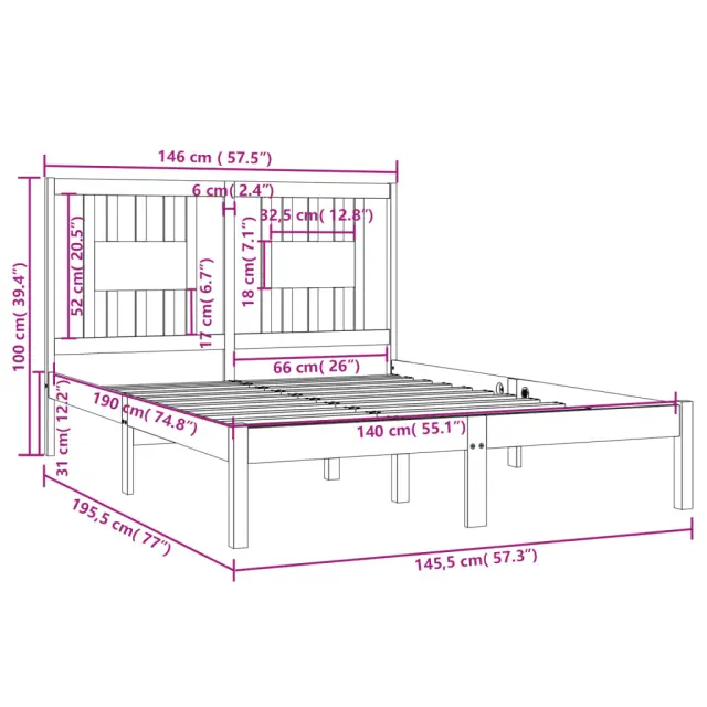 Kaj je boljše od dobrega spanca po napornem dnevu? Ta klasični leseni posteljni okvir je popolna izbira za vašo posteljo in odličen dodatek za sproščanje po dolgem dnevu. Vrhunska trdna borovina: Trdna borovina je čudovit naravni material. Borovina ima ravne vzorce, grče pa dajejo materialu njegov značilen, rustikalen videz.Letvice za dodatno podporo: Letvice ponujajo dodatno podporo za vašo posteljo. Podaljša življenjsko dobo vaše vzmetnice, saj absorbira večino obremenitev in teže na postelji.Praktično vzglavje: Vzglavje nudi dodatno oporo in poveča raven udobja. Prav tako obdrži vzglavnike na mestu za boljši spanec. Dobro je vedeti:Paket vsebuje samo posteljni okvir. Vzmetnica ni priložena. V naši trgovini si lahko ogledate ustrezne vzmetnice.Nekateri deli vzglavja so zaradi prostorskih omejitev zapakirani v škatlah v okvirju postelje.Ta posteljni okvir je primeren za vzmetnico velikosti 140 x 190 cm.Barva: BelaMaterial: Trdna borovinaCelotne dimenzije: 195,5 x 146 x 100 cm (D x Š x V)Dimenzije vzglavja: 146 x 4 x 100 cm (D x Š x V)Velikost primerne vzmetnice: 140 x 190 cm (Š x D) (vzmetnica ni priložena)Potrebno sestavljanje: DaPaket vsebuje:1 x Posteljni okvir1 x Vzglavje