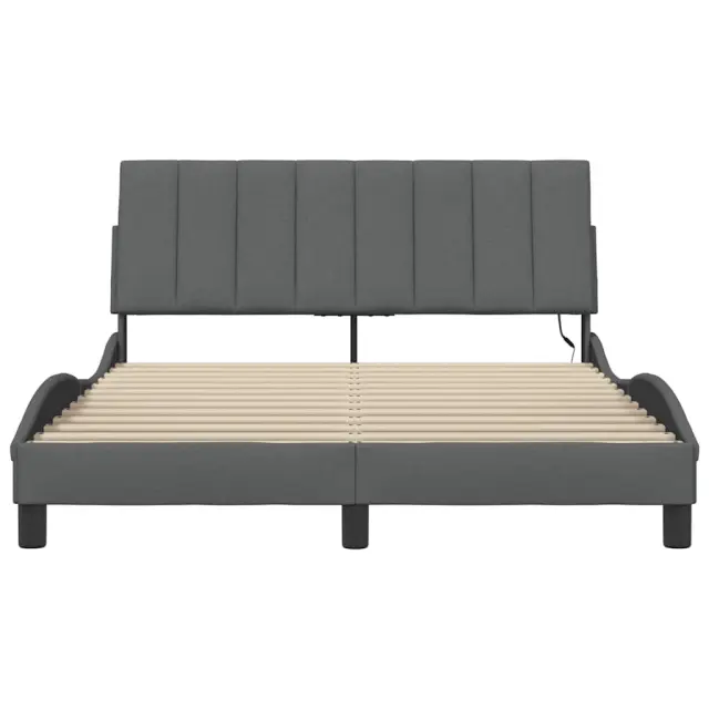 S tem posteljnim okvirjem z vzglavnikom si zagotovite mirnejši spanec! Trpežno blago: Blago zagotavlja preprost in čist videz, poleg tega pa je zračno in trpežno.Podporne noge: Postelja je podprta s čvrstimi nogami, ki zagotavljajo njeno stabilnost, varnost in trdnost.Letvice iz vezanega lesa: Letvice iz vezanega lesa omogočajo dobro porazdelitev teže in zagotavljajo, da vzmetnica ostane na mestu ob vsakem zasuku in obračanju med spanjem.Odlična podpora: Vzglavna stranica je napolnjena s PP vlakni za izjemno mehkobo in optimalno udobje ter zagotavlja odlično podporo hrbtu, ko sedite v postelji in berete ali gledate televizijo.LED osvetlitev za prijeten ambient: To posteljo odlikuje LED osvetlitev, ki jo je mogoče preprosto nastaviti in tako ustvariti posebno svetlobno predstavo. Prilagodite lahko načine, barve in svetlost ter tako izboljšate vzdušje v notranjem prostoru. Dobro je vedeti:Vzmetnica ni priložena tej postelji. Ponujamo različno izbiro ležišč. V naši trgovini si lahko ogledate ustrezne vzmetnice.Izdelek ima priključek USB, ki zahteva certificiran vir napajanja 5 V USB (ni priložen).Režete lahko samo del s simbolom škarij in samo del z USB bo deloval kot prej.Posteljni okvir:Barva: Temno sivaMaterial: Tkanina (100 % poliester), kovina, trdna borovina, vezan lesCelotne dimenzije: 208 x 145 x 74,5 cm (D x Š x V)Velikost primerne vzmetnice: 140 x 190 cm (Š x D) (vzmetnica ni priložena)Potrebno sestavljanje: DaOblazinjeno vzglavje:Barva: Temno sivaMaterial: Blago (100 % poliester)Material polnila: PP vlaknaDimenzije: 140 x 3 x 45 cm (D x Š x V)LED trak s silikonsko cevjo in pipo:Dolžina: 55 cmNapetost: DC 5 VDolžina kabla USB : 150 cmDolžina električnega kabla: 30 cmIP ocena: IP65S simbolom za rezanje s škarjamiPaket vsebuje:1 x Posteljni okvir1 x Oblazinjeno vzglavje2 x LED trak Vir svetlobe tega izdelka ni zamenljiv. Ko vir svetlobe doseže konec življenjske dobe, izdelek zamenjajte. Samo za notranjo uporabo, ne uporabljajte tega izdelka na prostem. Izdelek ima USB priključek, vendar certificiranega 5V USB napajalnika ni priloženega. Prosimo, uporabite samo certificiran DC 5V vhod. Višja napetost lahko povzroči pregrevanje, kar lahko povzroči poškodbe naprave in potencialno nevarnost pregrevanja in požara. Fleksibilnega kabla nizkonapetostnih luči ni mogoče zamenjati, in ne uporabljajte nizkonapetostnih luči, če je kabel poškodovan. Ne povežite LED svetilke s certificiranim 5V USB napajalnikom med namestitvijo in vzdrževanjem. Te naprave ne smejo uporabljati otroci, mlajši od 14 let, in osebe z zmanjšanimi fizičnimi, čutnimi ali duševnimi sposobnostmi ali pomanjkanjem izkušenj in znanja. NE upoštevajte tega izdelka v prisotnosti eksplozivnih snovi, kot so vnetljivi tekočine, plini in prah ali pri ekstremnih temperaturah nad 50 stopinjami Celzija.