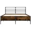 Zagotovite si boljši spanec s tem posteljnim okvirjem! Je prijeten dodatek za vsako spalnico. Vzdržljiv material: Inženirski les se ponaša z izjemno kakovostjo, gladko površino ter močjo, stabilnostjo in odpornostjo na vlago. Kovinske noge in letvice iz vezanega lesa: Okvir postelje je opremljen s kovinskimi nogami in letvicami iz vezanega lesa, ki ležišču nudijo potrebno oporo in zračnost.Odlična podpora: Vzglavje zagotavlja odlično oporo hrbtu, ko sedite v postelji in berete ali gledate televizijo. Dobro je vedeti: Vzmetnica ni priložena tej postelji. Ponujamo različno izbiro ležišč. V naši trgovini si lahko ogledate ustrezne vzmetnice.Barva: Dimljeni hrastMaterial posteljnega okvirja: Inženirski les, kovinaMaterial letvic: Vezan lesCelotne dimenzije: 193 x 143 x 74 cm (D x Š x V)Velikost primerne vzmetnice: 140 x 190 cm (Š x D) (vzmetnica ni priložena)Potrebno sestavljanje: Da