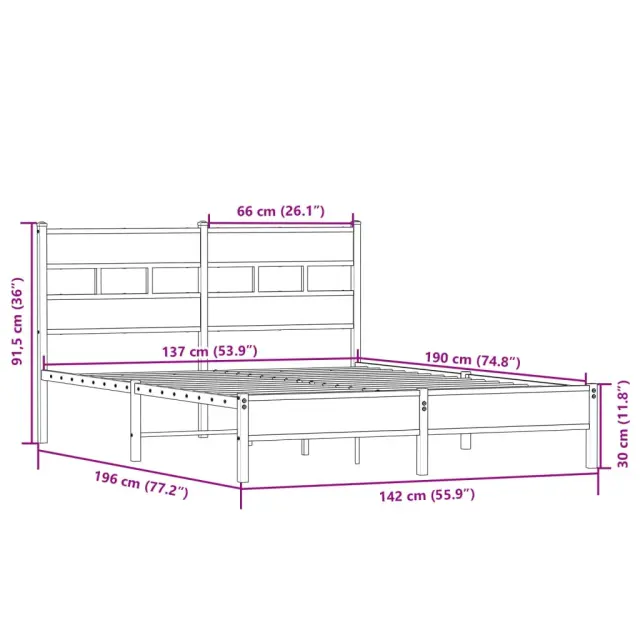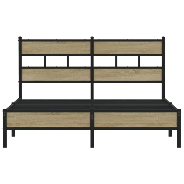 Če iščete trpežen posteljni okvir za svojo spalnico, je ta klasični posteljni okvir z elegantnim in brezčasnim dizajnom popolna izbira!Robustna kovinska konstrukcija: Okvir postelje je izdelan iz jekla. Jeklo je izjemno trd in močan material, ki zagotavlja izjemno trdnost in stabilnost.Kovinske letvice in noge: Kovinski posteljni okvir je opremljen s kovinskimi letvami in sredinskimi nogami, ki ležišču nudijo nujno potrebno oporo in zračnost.Dodaten prostor za shranjevanje: Za vaše udobje ima postelja za goste pod seboj tudi dodaten prostor, da vaše škatle za shranjevanje ne bodo vidne.Odlična opora: Vzglavje zagotavlja odlično oporo hrbtu, ko sedite v postelji in berete ali gledate televizijo.Dobro je vedeti:Vzmetnica ni priložena tej postelji. Ponujamo različno izbiro ležišč. V naši trgovini si lahko ogledate ustrezne vzmetnice.Za čim lažjo montažo je vsakemu izdelku priložen priročnik.Barva: Sonoma hrastMaterial: Jeklo, inženirski lesCelotne dimenzije: 196 x 142 x 91,5 cm (D x Š x V)Višina prostora pod posteljo: 28 cmVelikost primerne vzmetnice: 137 x 190 cm (Š x D) (vzmetnica ni priložena)Potrebno sestavljanje: Da