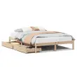 Zagotovite si boljši spanec s tem posteljnim okvirjem! Je prijeten dodatek za vsako spalnico. Stabilen in dolgotrajen okvir: Trdna borovina je znana po svoji trdnosti in trajnosti. Ravni vzorci in značilni vozli prispevajo k njenemu rustikalnemu čaru.Podnožje z letvami za optimalno podporo: Za podporo in zračnost ležišča je posteljni okvir opremljen z letvenim dnom.Popolnoma izkoriščen prostor: Ta posteljni okvir ima spodaj dva predala, ki omogočata shranjevanje predmetov, kot so dodatna posteljnina, sezonska oblačila in igrače.Preprosto manevriranje: Ta predal za shranjevanje pod posteljo ima štiri kolesa, ki zagotavljajo gladko in lahkotno manevriranje pri drsenju pod posteljo in izpod nje. Dobro je vedeti:Vzmetnica ni priložena tej postelji. Ponujamo različno izbiro ležišč. V naši trgovini si lahko ogledate ustrezne vzmetnice.Material: Trdna borovina (neobdelana)Potrebno sestavljanje: DaPostelja:Dimenzije: 195,5 x 125,5 x 31 cm (D x Š x V)Višina spalnega prostora, merjena od tal: 31 cmVišina prostora pod posteljo: 21 cmVelikost primerne vzmetnice: 120 x 190 cm (Š x D) (vzmetnica ni priložena)Največja nosilnost (z ležiščem): 100 kgZ letvenim podomPredal:Zunanje dimenzije: 90 x 55 x 16 cm (Š x G x V)Notranje dimenzije: 81,5 x 52,5 x 10 cm (Š x G x V)Maks. nosilnost (vsaka): 20 kgS štirimi kolesiPaket vsebuje:1 x Posteljni okvir z letvenim podnožjem2 x Predal