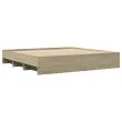 Zagotovite si boljši spanec s tem posteljnim okvirjem! Je prijeten dodatek za vsako spalnico. Vzdržljiv material: Posteljni okvir je izdelan iz inženirskega lesa. Inženirski les se ponaša z izjemno kakovostjo, gladko površino ter močjo, stabilnostjo in odpornostjo na vlago.Podnožje z letvami za optimalno podporo: Za podporo in zračnost ležišča je posteljni okvir opremljen z letvenim dnom.Funkcija shranjevanja: Ta posteljni okvir ima odprte predelke za dobro organizacijo revij, knjig, igrač in drugih manjših predmetov. Dobro je vedeti:Vzmetnica ni priložena tej postelji. Ponujamo različno izbiro ležišč. V naši trgovini si lahko ogledate ustrezne vzmetnice.Barva: Sonoma hrastMaterial posteljnega okvirja: Inženirski lesMaterial letvic: Vezan lesCelotne dimenzije: 203 x 183 x 35 cm (D x Š x V)Dimenzije predelka (vsak): 68,5/60 x 18,5 x 15 cm (D x Š x V)Velikost primerne vzmetnice: 180 x 200 cm (Š x D) (vzmetnica ni priložena)Potrebno sestavljanje: Da