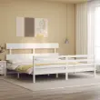 S tem lesenim posteljnim okvirjem lahko uživate v odličnem spancu! To je praktičen in dekorativen dodatek za vaše notranje prostore. Vzdržljiv material: Trdna borovina je čudovit naravni material. Borovina ima ravne vzorce, grče pa dajejo materialu njegov značilen, rustikalen videz. Ta postelja je izdelana iz trdnega borovega lesa, zato je trpežna in vzdržljiva.Letvice iz vezanega lesa: Letvice iz vezanega lesa zagotavljajo dobro porazdelitev teže, kar ležišču zagotavlja prepotrebno oporo in zračnost.Funkcionalno vzglavje in podnožje: Vzglavje in podnožje lesene postelje ohranjata ležišče na mestu. Poleg tega vzglavje zagotavlja odlično oporo hrbtu, ko sedite v postelji in berete ali gledate televizijo. Dobro je vedeti: Vzmetnica ni priložena tej postelji. Ponujamo različno izbiro ležišč. V naši trgovini si lahko ogledate ustrezne vzmetnice.Barva: BelaMaterial: Trdna borovinaCelotne dimenzije postelje: 205,5 x 205,5 x 81 cm (D x Š x V)Višina prostora pod posteljo: 21 cmVelikost primerne vzmetnice: 200 x 200 cm (Š x D) (vzmetnica ni priložena)Potrebno sestavljanje: Da