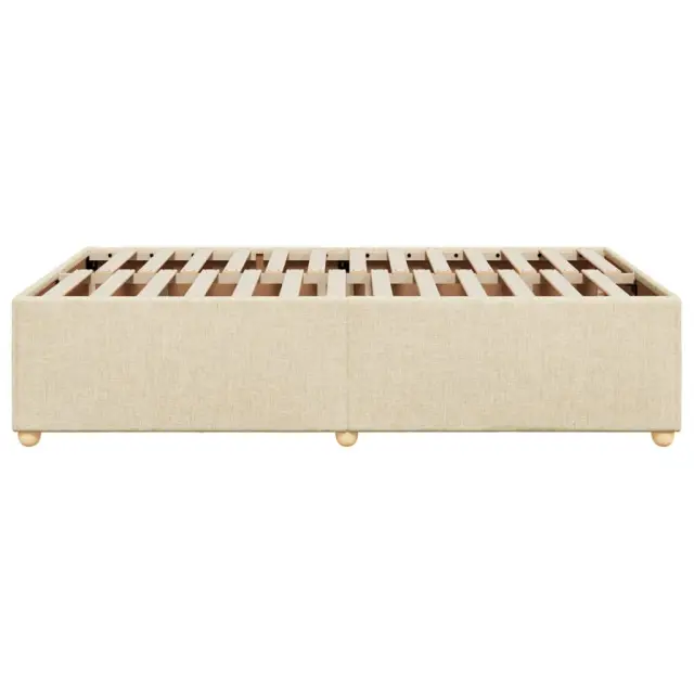 Zagotovite si boljši spanec s tem posteljnim okvirjem! Je prijeten dodatek za vsako spalnico. Mehak in trpežen material: Tkanina iz poliestra združuje mehkobo, zračnost in trpežnost ter vam zagotavlja popolno udobje in prijetnost.Letvice za optimalno podporo: Ta posteljni okvir je opremljen z letvicami, ki zagotavljajo osnovno podporo in zračnost vašega ležišča.Stabilne in vzdržljive noge: Ta postelja je podprta z robustnimi nogami, ki zagotavljajo stabilnost, varnost in trdnost. Dobro je vedeti:Vzmetnica ni priložena tej postelji. Ponujamo različno izbiro ležišč. V naši trgovini si lahko ogledate ustrezne vzmetnice.Barva: KremMaterial: Tkanina (100 % poliester), vezan les, inženirski les, trdna borovinaDimenzije: 200 x 120 x 46 cm (D x Š x V)Velikost primerne vzmetnice: 120 x 200 cm (Š x D) (vzmetnica ni priložena)Utrjene plastične nogicePodporne noge iz trdnega borovega lesaPotrebno sestavljanje: Da