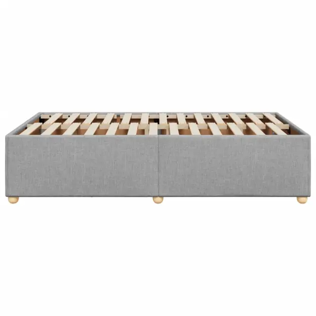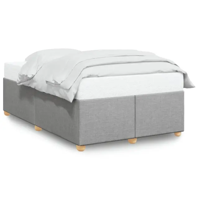 Zagotovite si boljši spanec s tem posteljnim okvirjem! Je prijeten dodatek za vsako spalnico. Mehak in trpežen material: Tkanina iz poliestra združuje mehkobo, zračnost in trpežnost ter vam zagotavlja popolno udobje in prijetnost.Letvice za optimalno podporo: Ta posteljni okvir je opremljen z letvicami, ki zagotavljajo osnovno podporo in zračnost vašega ležišča.Stabilne in vzdržljive noge: Ta postelja je podprta z robustnimi nogami, ki zagotavljajo stabilnost, varnost in trdnost. Dobro je vedeti:Vzmetnica ni priložena tej postelji. Ponujamo različno izbiro ležišč. V naši trgovini si lahko ogledate ustrezne vzmetnice.Barva: Svetlo sivaMaterial: Tkanina (100 % poliester), vezan les, inženirski les, trdna borovinaDimenzije: 190 x 120 x 46 cm (D x Š x V)Primerno za velikost vzmetnice: 120 x 190 cm (Š x D) (vzmetnica ni priložena)Utrjene plastične nogicePodporne noge iz trdnega borovega lesaPotrebno sestavljanje: Da