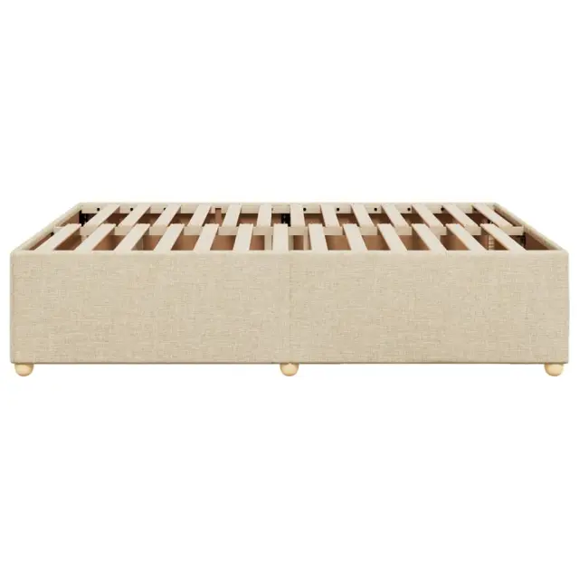 Zagotovite si boljši spanec s tem posteljnim okvirjem! Je prijeten dodatek za vsako spalnico. Mehak in trpežen material: Tkanina iz poliestra združuje mehkobo, zračnost in trpežnost ter vam zagotavlja popolno udobje in prijetnost.Letvice za optimalno podporo: Ta posteljni okvir je opremljen z letvicami, ki zagotavljajo osnovno podporo in zračnost vašega ležišča.Stabilne in vzdržljive noge: Ta postelja je podprta z robustnimi nogami, ki zagotavljajo stabilnost, varnost in trdnost. Dobro je vedeti:Vzmetnica ni priložena tej postelji. Ponujamo različno izbiro ležišč. V naši trgovini si lahko ogledate ustrezne vzmetnice.Barva: KremMaterial: Tkanina (100 % poliester), vezan les, inženirski les, trdna borovinaDimenzije: 200 x 160 x 46 cm (D x Š x V)Velikost primerne vzmetnice: 160 x 200 cm (Š x D) (vzmetnica ni priložena)Utrjene plastične nogicePodporne noge iz trdnega borovega lesaPotrebno sestavljanje: Da