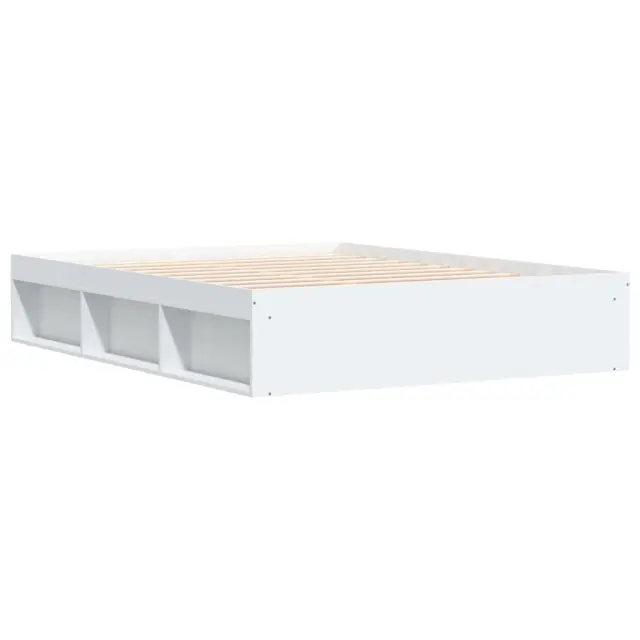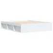 Ustvarite moderno spalnico s tem posteljnim okvirjem! To bo praktičen in okrasen dodatek za vaše notranje prostore. Vzdržljiv material: Inženirski les se ponaša z izjemno kakovostjo, gladko površino ter močjo, stabilnostjo in odpornostjo na vlago.Letvice iz vezanega lesa: Letvice iz vezanega lesa omogočajo dobro porazdelitev teže in zagotavljajo, da vzmetnica ostane na mestu ob vsakem zasuku in obračanju med spanjem.Dodaten prostor za shranjevanje: Postelja za goste ima skupno 6 predelkov na obeh straneh postelje za shranjevanje stvari, kot so knjige, lončnice in drugi okraski. Dobro je vedeti:Vzmetnica ni priložena tej postelji. Ponujamo različno izbiro ležišč. V naši trgovini si lahko ogledate ustrezne vzmetnice.Barva: BelaMaterial posteljnega okvirja: Inženirski les, trdna borovinaMaterial letvic: Vezan lesCelotne dimenzije: 203 x 143 x 35 cm (D x Š x V)Primerna velikost vzmetnice (vzmetnica ni vključena): 140 x 200 cm (Š x D)Potrebno sestavljanje: Da