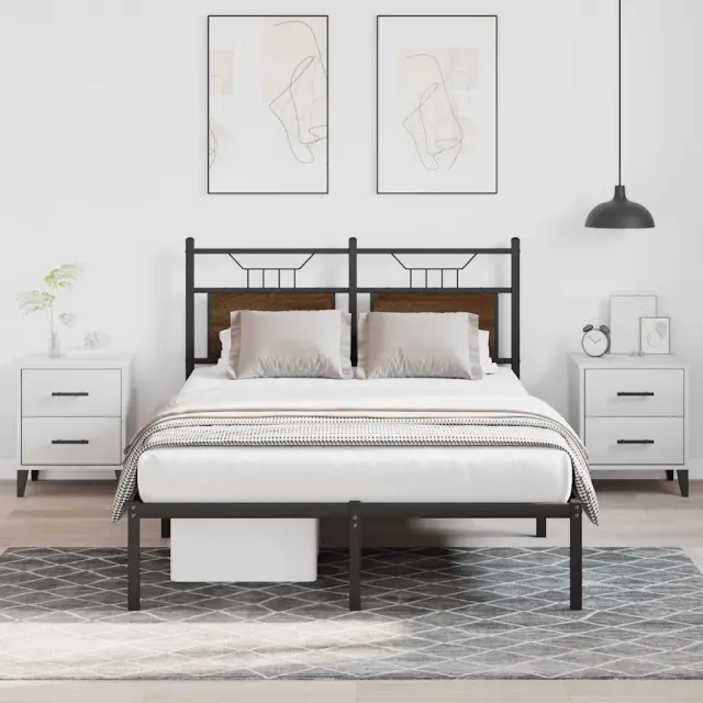 Zagotovite si boljši spanec s tem posteljnim okvirjem! Je prijeten dodatek za vsako spalnico. Stabilen in dolgotrajen okvir: Jeklo je močno, stabilno in trpežno, zato je idealna izbira za številne aplikacije, od proizvodnje pohištva do gradbeništva.Vsestransko vzglavje: Ta postelja je opremljena z vzglavjem, ki zagotavlja odlično oporo hrbtu, ko sedite v postelji in berete ali gledate televizijo, hkrati pa služi tudi kot dekorativni element.Dodaten prostor za shranjevanje: Za udobje ima posteljni podstavek pod seboj dodaten prostor, v katerem lahko shranite škatle za shranjevanje, ki niso vidne.Podnožje z letvami za optimalno podporo: Kovinski posteljni okvir je opremljen z letvenim dnom, ki zagotavlja oporo in zračnost ležišča. Dobro je vedeti:Vzmetnica ni priložena tej postelji. Ponujamo različno izbiro ležišč. V naši trgovini si lahko ogledate ustrezne vzmetnice.Barva: Dimljeni hrastMaterial: Inženirski les in jekloCelotne dimenzije: 207 x 126 x 91,5 cm (D x Š x V)Višina prostora pod posteljo: 27 cmVelikost primerne vzmetnice: 120 x 200 cm (Š x D) (vzmetnica ni priložena)Z vzglavjemPotrebno sestavljanje: Da