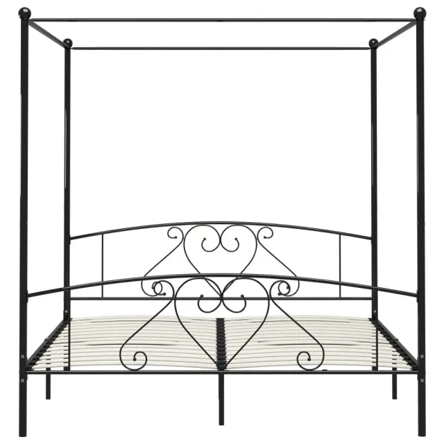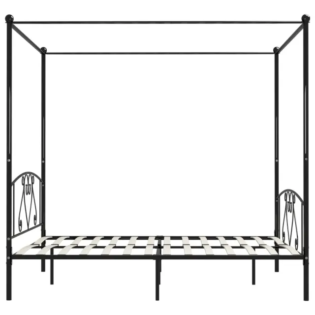 Z našim kovinskim posteljnim okvirjem z ogrodjem za baldahin lahko v svoji spalnici ustvarite elegantno in klasično vzdušje! Postelja je pametno zasnovana z ogrodjem za baldahin za obešanje najljubših zaves, kar bo prispevalo k edinstvenemu šarmu vaše spalnice in ustvarilo dodatno zasebnost. Ta posteljni okvir je izdelan iz trdne kovine, zato je izjemno trden in trpežen. Z vsemi temi lastnostmi boste ponoči dobro spali! Posteljni okvir je potrebno sestaviti. Upoštevajte, da paket vsebuje samo posteljni okvir s podom iz letvic. Vzmetnica ni priložena. V naši trgovini si lahko ogledate primerno vzmetnico.Barva: ČrnaMaterial: KovinaCelotne dimenzije: 209 x 187,5 x 198 cm (D x Š x V)Velikost primerne vzmetnice: 180 x 200 cm (Š x D) (vzmetnica ni priložena)