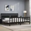 Posteljni okvir - Dvoposteljna postelja - Zakonska postelja z vzglavjem črn 200x200 cm trden les-J5882