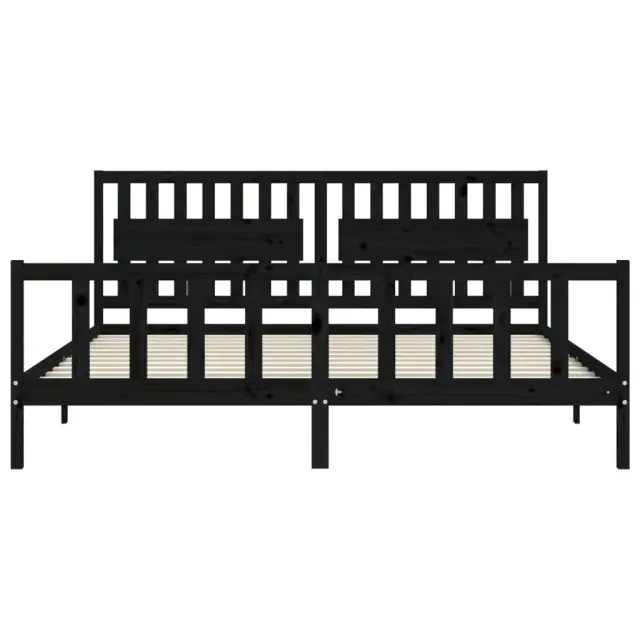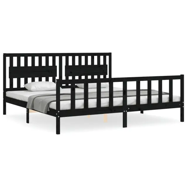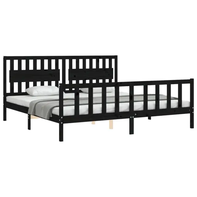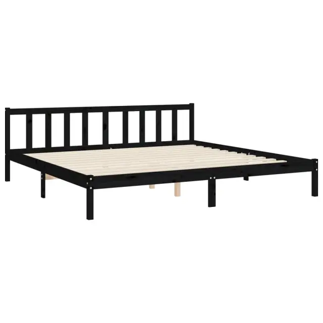 S tem lesenim posteljnim okvirjem lahko uživate v odličnem spancu! To je praktičen in dekorativen dodatek za vaše notranje prostore. Vzdržljiv material: Trdna borovina je čudovit naravni material. Borovina ima ravne vzorce, grče pa dajejo materialu njegov značilen, rustikalen videz. Ta postelja je izdelana iz trdnega borovega lesa, zato je trpežna in vzdržljiva.Letvice iz vezanega lesa: Letvice iz vezanega lesa zagotavljajo dobro porazdelitev teže, kar ležišču zagotavlja prepotrebno oporo in zračnost.Funkcionalno vzglavje in podnožje: Vzglavje in podnožje lesene postelje ohranjata ležišče na mestu. Poleg tega vzglavje zagotavlja odlično oporo hrbtu, ko sedite v postelji in berete ali gledate televizijo. Dobro je vedeti: Vzmetnica ni priložena tej postelji. Ponujamo različno izbiro ležišč. V naši trgovini si lahko ogledate ustrezne vzmetnice.Nekateri deli vzglavja so zaradi prostorskih omejitev zapakirani v škatlah v okvirju postelje.Barva: ČrnaMaterial: Trdna borovinaCelotne dimenzije postelje: 205,5 x 205,5 x 100 cm (D x Š x V)Višina prostora pod posteljo: 21 cmPrimerna velikost vzmetnice (vzmetnica ni vključena): 200 x 200 cm (Š x D)Potrebno sestavljanje: Da