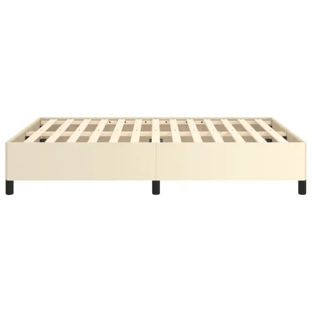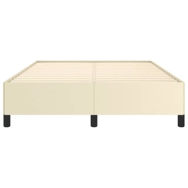 Zagotovite si boljši spanec s tem posteljnim okvirjem! Je prijeten dodatek za vsako spalnico. Trpežno umetno usnje: Vrhunsko umetno usnje je zelo vzdržljiv material. Je odporno na madeže, zato ga lahko preprosto čistite z vlažno krpo. Gladka površina mu prav tako daje razkošen videz in lepoto pravega usnja.Podporne noge: Postelja je podprta s čvrstimi nogami, ki zagotavljajo njeno stabilnost, varnost in trdnost.Letvice iz vezanega lesa: Letvice iz vezanega lesa omogočajo dobro porazdelitev teže in zagotavljajo, da vzmetnica ostane na mestu ob vsakem zasuku in obračanju med spanjem. Opomba:Paket vsebuje samo posteljni okvir. Vzmetnica ni priložena. V naši trgovini si lahko ogledate ustrezne vzmetnice.Vsakemu izdelku je priložen priročnik za enostavno sestavljanje.Barva: KremMaterial: Umetno usnje (75 % polivinilklorid, 5 % bombaž, 20 % poliester), vezan les, konstruiran lesCelotne dimenzije: 203 x 143 x 35 cm (D x Š x V)Velikost primerne vzmetnice: 140 x 200 cm (Š x D) (vzmetnica ni priložena)