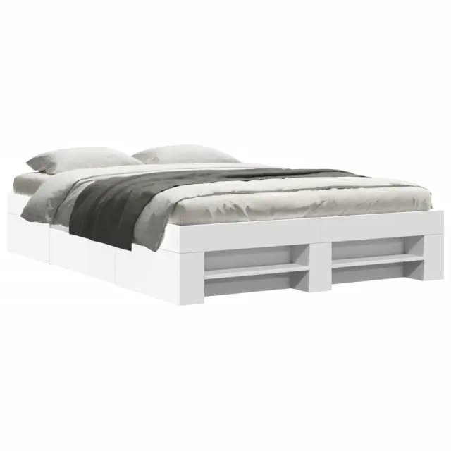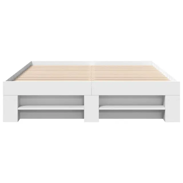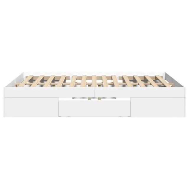 Zagotovite si boljši spanec s tem posteljnim okvirjem! Je prijeten dodatek za vsako spalnico. Vzdržljiv material: Posteljni okvir je izdelan iz inženirskega lesa. Inženirski les se ponaša z izjemno kakovostjo, gladko površino ter močjo, stabilnostjo in odpornostjo na vlago.Podnožje z letvami za optimalno podporo: Za podporo in zračnost ležišča je posteljni okvir opremljen z letvenim dnom.Funkcija shranjevanja: Ta posteljni okvir ima predale in odprte predelke za dobro organizacijo revij, knjig, igrač in drugih manjših predmetov. Dobro je vedeti:Vzmetnica ni priložena tej postelji. Ponujamo različno izbiro ležišč. V naši trgovini si lahko ogledate ustrezne vzmetnice.Barva: BelaMaterial posteljnega okvirja: Inženirski lesMaterial letvic: Vezan lesCelotne dimenzije: 193 x 138 x 33 cm (D x Š x V)Dimenzije predelkov (vsak): 51 x 14,5 x 10 cm (D x Š x V)Dimenzije predalov (vsak): 79,5 x 28,5 x 18 cm (D x Š x V)Velikost primerne vzmetnice: 135 x 190 cm (Š x D) (vzmetnica ni priložena)Potrebno sestavljanje: Da