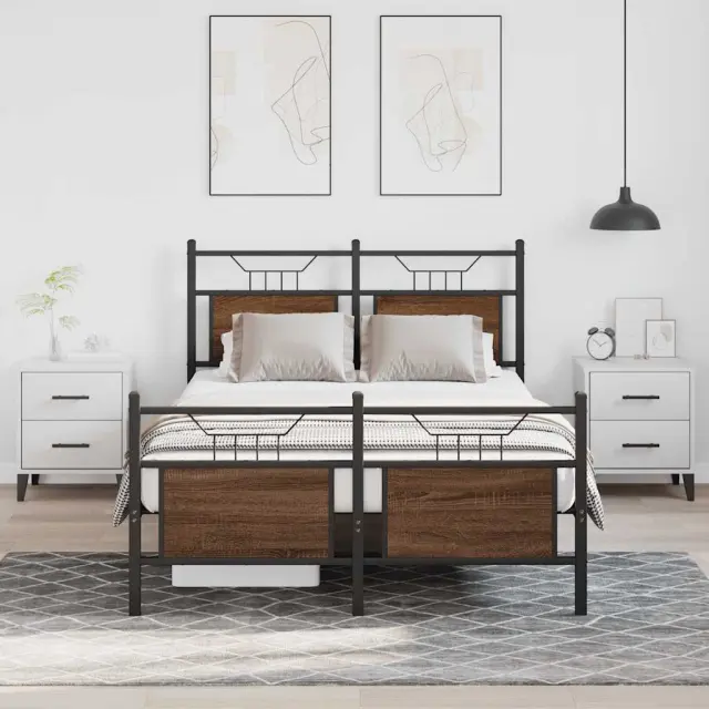 Zagotovite si boljši spanec s tem posteljnim okvirjem! Je prijeten dodatek za vsako spalnico. Stabilen in dolgotrajen okvir: Jeklo je močno, stabilno in trpežno, zato je idealna izbira za številne aplikacije, od proizvodnje pohištva do gradbeništva.Funkcionalno vzglavje in podnožje: Vzglavje in podnožje posteljnega dna ohranjata ležišče na mestu. Poleg tega vzglavje zagotavlja odlično oporo hrbtu, ko sedite v postelji in berete ali gledate televizijo.Dodaten prostor za shranjevanje: Za udobje ima posteljni podstavek pod seboj dodaten prostor, v katerem lahko shranite škatle za shranjevanje, ki niso vidne.Podnožje z letvami za optimalno podporo: Kovinski posteljni okvir je opremljen z letvenim dnom, ki zagotavlja oporo in zračnost ležišča. Dobro je vedeti:Vzmetnica ni priložena tej postelji. Ponujamo različno izbiro ležišč. V naši trgovini si lahko ogledate ustrezne vzmetnice.Barva: Dimljeni hrastMaterial: Inženirski les in jekloCelotne dimenzije: 196 x 126 x 91,5 cm (D x Š x V)Višina prostora pod posteljo: 27 cmVelikost primerne vzmetnice: 120 x 190 cm (Š x D) (vzmetnica ni priložena)Z vzglavjem in podnožjemPotrebno sestavljanje: Da