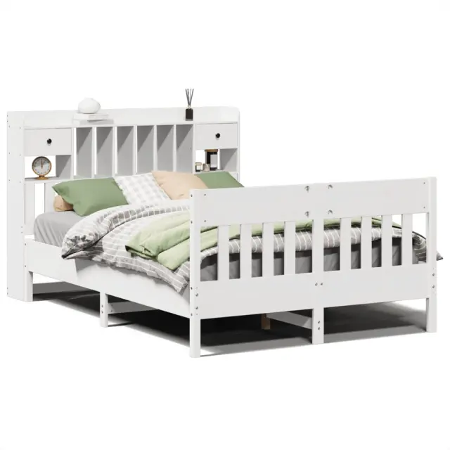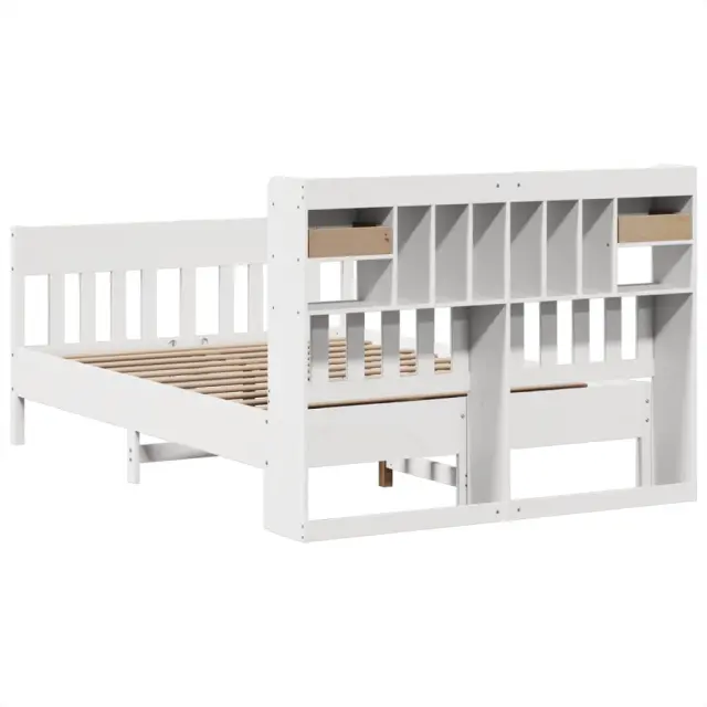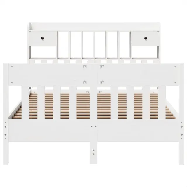 S tem lesenim posteljnim okvirjem lahko uživate v odličnem spancu! To je praktičen in dekorativen dodatek za vaše notranje prostore. Stabilen in dolgotrajen okvir: Trdna borovina je znana po svoji trdnosti in trajnosti. Ravni vzorci in značilni vozli prispevajo k njenemu rustikalnemu čaru.Podnožje z letvami za optimalno podporo: Za podporo in zračnost ležišča je posteljni okvir opremljen z letvenim dnom.Dodaten prostor za shranjevanje: To elegantno vzglavje ima 6 priročnih predelkov in 2 predala, ki nudijo dovolj prostora za shranjevanje, da so vse vaše nočne potrebščine na dosegu roke. Za večje udobje je pod leseno posteljo dodaten prostor, v katerem lahko shranite škatle za shranjevanje, da bodo lepo skrite.Stabilne in vzdržljive noge: Ta postelja je podprta z robustnimi nogami, ki zagotavljajo stabilnost, varnost in trdnost.Funkcionalno vzglavje in podnožje: Vzglavje in podnožje posteljnega dna ohranjata ležišče na mestu. Poleg tega vzglavje zagotavlja odlično oporo hrbtu, ko sedite v postelji in berete ali gledate televizijo. Dobro je vedeti:Vzmetnica ni priložena tej postelji. Ponujamo različno izbiro ležišč. V naši trgovini si lahko ogledate ustrezne vzmetnice.Barva: BelaMaterial: Trdna borovinaMaterial letvic: Vezan lesDimenzije: 218,5 x 146 x 110 cm (D x Š x V)Velikost primerne vzmetnice: 140 x 190 cm (Š x D) (vzmetnica ni priložena)S predelki za shranjevanjeZ 2 predalomaPotrebno sestavljanje: Da