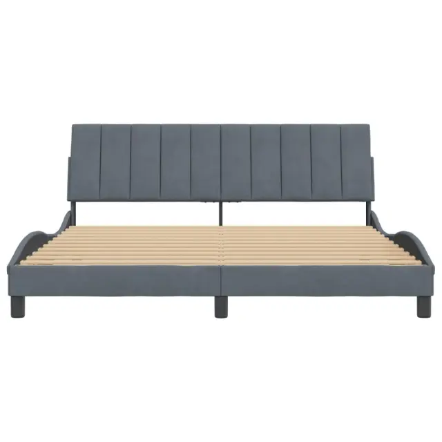Zagotovite si boljši spanec s tem posteljnim okvirjem z vzglavjem! Je prijeten dodatek za vsako spalnico. Mehak žamet: Žamet je mehka in udobna tkanina, ki je prijetna do kože.Letvice iz vezanega lesa: Letvice iz vezanega lesa omogočajo dobro porazdelitev teže in zagotavljajo, da vzmetnica ostane na mestu ob vsakem zasuku in obračanju med spanjem.Odlična podpora: Vzglavna stranica je napolnjena s peno za izjemno mehkobo in optimalno udobje ter zagotavlja odlično podporo hrbtu, ko sedite v postelji in berete ali gledate televizijo.Priročna zasnova: Vzglavna stranica ima zadrgo za preprosto namestitev, pripenjala na zadnji strani pa se lahko uporabijo za pritrditev LED lučk.Valovita stranica: Valoviti videz posteljnega okvirja je eleganten in prefinjen. Dekorju v vašem domu dodaja sodoben in eleganten pridih ter tako postane osrednja točka spalnice. Dobro je vedeti:Vzmetnica ni priložena tej postelji. Ponujamo različno izbiro ležišč. V naši trgovini si lahko ogledate ustrezne vzmetnice.Posteljni okvir z vzglavjem:Barva: Temno sivaMaterial: Žamet (100 % poliester), kovina, trdna borovina, vezan les, inženirski lesCelotne dimenzije: 218 x 185 x 74,5 cm (D x Š x V)Velikost primerne vzmetnice: 180 x 200 cm (Š x D) (vzmetnica ni priložena)Oblazinjeno vzglavje:Barva: Temno sivaMaterial: Žamet (100 % poliester)Material polnila: PenaDimenzije: 180 x 3 x 45 cm (D x Š x V)Širina primerne vzmetnice: 180 cmPotrebno sestavljanje: DaPaket vsebuje:1 x Posteljni okvir z vzglavjem1 x Oblazinjeno vzglavje
