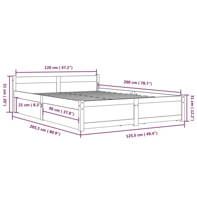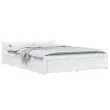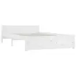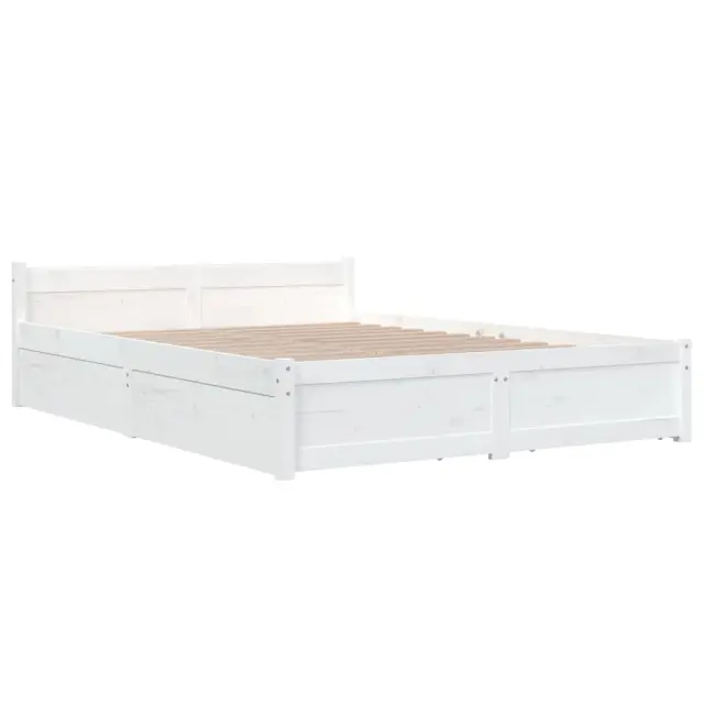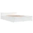 Dodajte svoji spalnici moderen pridih s tem klasičnim lesenim posteljnim okvirjem! To je praktičen in dekorativen dodatek za vaše notranje prostore. Trdna borovina: Trdna borovina je čudovit naravni material. Borovina ima ravne vzorce, grče pa dajejo materialu njegov značilen, rustikalen videz.Trdne letvice: Letvice iz vezanega lesa omogočajo dobro porazdelitev teže in zagotavljajo, da vzmetnica ostane na mestu ob vsakem zasuku in obračanju med spanjem.Funkcija shranjevanja: Priloženi posteljni predali nudijo dovolj prostora za shranjevanje potrebščin, da bo soba čista in urejena.Udobno vzglavje: Klasično vzglavje omogoča udoben počitek med branjem ali gledanjem filma. Opomba:Paket vsebuje samo posteljni okvir. Vzmetnica ni priložena. V naši trgovini si lahko ogledate ustrezne vzmetnice.Ta posteljni okvir je primeren za vzmetnico velikosti 120 x 200 cm.Barva: BelaMaterial posteljnega okvirja: Trdna borovinaMaterial letvic: Vezan lesDimenzije postelje: 205,5 x 125,5 x 51 cm (D x Š x V)Dimenzije vsakega predala: 95 x 57 x 18 cm (Š x G x V)Velikost primerne vzmetnice: 120 x 200 cm (Š x D) (vzmetnica ni priložena)Potrebno sestavljanje: DaPaket vsebuje:1 x Posteljni okvir1 x Vzglavje4 x Posteljni predal