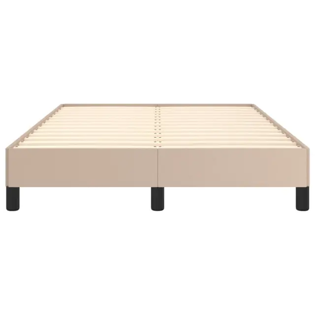 Zagotovite si boljši spanec s tem posteljnim okvirjem! Je prijeten dodatek za vsako spalnico. Trpežno umetno usnje: Vrhunsko umetno usnje je zelo vzdržljiv material. Je odporno na madeže, zato ga lahko preprosto čistite z vlažno krpo. Gladka površina mu prav tako daje razkošen videz in lepoto pravega usnja.Podporne noge: Postelja je podprta s čvrstimi nogami, ki zagotavljajo njeno stabilnost, varnost in trdnost.Letvice iz vezanega lesa: Letvice iz vezanega lesa omogočajo dobro porazdelitev teže in zagotavljajo, da vzmetnica ostane na mestu ob vsakem zasuku in obračanju med spanjem. Opomba:Paket vsebuje samo posteljni okvir. Vzmetnica ni priložena. V naši trgovini si lahko ogledate ustrezne vzmetnice.Vsakemu izdelku je priložen priročnik za enostavno sestavljanje.Barva: KapučinoMaterial: Umetno usnje (75 % polivinilklorid, 5 % bombaž, 20 % poliester), vezan les, konstruiran lesCelotne dimenzije: 203 x 123 x 25 cm (D x Š x V)Velikost primerne vzmetnice: 120 x 200 cm (Š x D) (vzmetnica ni priložena)