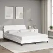 Zagotovite si boljši spanec s tem posteljnim okvirjem z vzglavjem! Je prijeten dodatek za vsako spalnico. Trpežno umetno usnje: Vrhunsko umetno usnje je zelo vzdržljiv material. Je odporno na madeže, zato ga lahko preprosto čistite z vlažno krpo. Gladka površina mu prav tako daje razkošen videz in lepoto pravega usnja.Podporne noge: Postelja je podprta s čvrstimi nogami, ki zagotavljajo njeno stabilnost, varnost in trdnost.Letvice iz vezanega lesa: Letvice iz vezanega lesa omogočajo dobro porazdelitev teže in zagotavljajo, da vzmetnica ostane na mestu ob vsakem zasuku in obračanju med spanjem.Udobna opora: To vzglavje za posteljo vam zagotavlja odlično oporo za hrbet, ko sedite na postelji in berete ali gledate filme.Valovita stranica: Valoviti videz posteljnega okvirja je eleganten in prefinjen. Dekorju v vašem domu dodaja sodoben in eleganten pridih ter tako postane osrednja točka spalnice. Dobro je vedeti:Vzmetnica ni priložena tej postelji. Ponujamo različno izbiro ležišč. V naši trgovini si lahko ogledate ustrezne vzmetnice.Barva: BelaMaterial: Umetno usnje (75 % polivinilklorid, 5 % bombaž, 20 % poliester), kovina, trdna borovina, vezan lesCelotne dimenzije: 208 x 145 x 74,5 cm (D x Š x V)Velikost primerne vzmetnice: 140 x 190 cm (Š x D) (vzmetnica ni priložena)Potrebno sestavljanje: Da