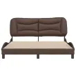 Zagotovite si boljši spanec s tem posteljnim okvirjem z vzglavjem! Je prijeten dodatek za vsako spalnico. Trpežno umetno usnje: Vrhunsko umetno usnje je zelo vzdržljiv material. Je odporno na madeže, zato ga lahko preprosto čistite z vlažno krpo. Gladka površina mu prav tako daje razkošen videz in lepoto pravega usnja.Letvice iz vezanega lesa: Letvice iz vezanega lesa omogočajo dobro porazdelitev teže in zagotavljajo, da vzmetnica ostane na mestu ob vsakem zasuku in obračanju med spanjem.Odlična podpora: Vzglavna stranica je napolnjena s PP vlakni za izjemno mehkobo in optimalno udobje ter zagotavlja odlično podporo hrbtu, ko sedite v postelji in berete ali gledate televizijo.Valovita stranica: Valoviti videz posteljnega okvirja je eleganten in prefinjen. Dekorju v vašem domu dodaja sodoben in eleganten pridih ter tako postane osrednja točka spalnice. Dobro je vedeti:Vzmetnica ni priložena tej postelji. Ponujamo različno izbiro ležišč. V naši trgovini si lahko ogledate ustrezne vzmetnice.Posteljni okvir z vzglavjem:Barva: RjavaMaterial: Umetno usnje (75 % polivinilklorid, 5 % bombaž, 20 % poliester), kovina, trdna borovina, vezan lesCelotne dimenzije: 218 x 165 x 74,5 cm (D x Š x V)Velikost primerne vzmetnice: 160 x 200 cm (Š x D) (vzmetnica ni priložena)Oblazinjeno vzglavje:Barva: RjavaMaterial: Umetno usnje (75 % polivinilklorid, 5 % bombaž, 20 % poliester)Material polnila: PP vlaknaDimenzije: 170 x 15 x 48 cm (D x Š x V)Primerna širina vzmetnice: 160 cmPotrebno sestavljanje: DaPaket vsebuje:1 x Posteljni okvir z vzglavjem1 x Oblazinjeno vzglavje