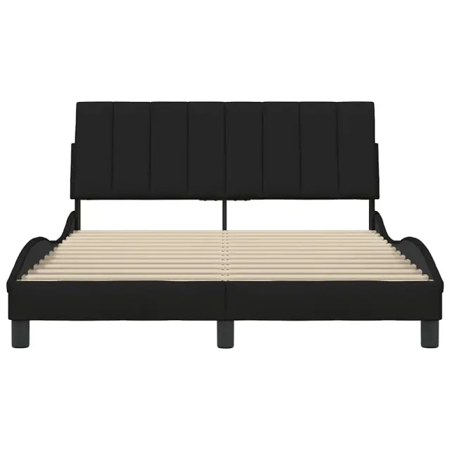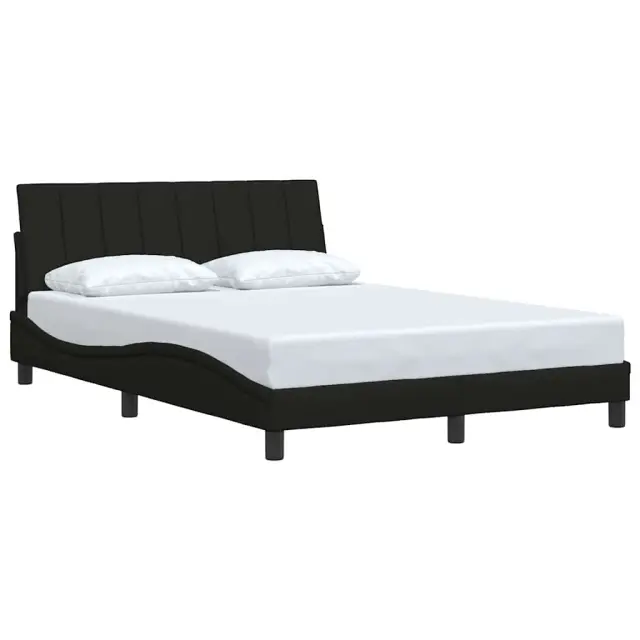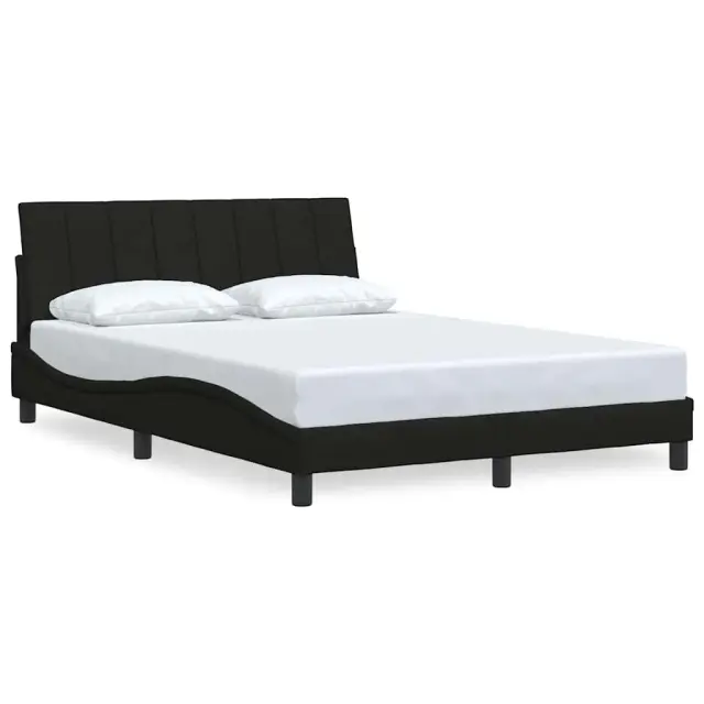 Zagotovite si boljši spanec s tem posteljnim okvirjem! Je prijeten dodatek za vsako spalnico. Mehak in trpežen material: Tkanina iz poliestra ponuja kombinacijo mehkobe, zračnosti in trpežnosti ter vam zagotavlja popolno udobje in prijetnost.Letvice za optimalno podporo: Ta posteljni okvir je opremljen z letvicami, ki zagotavljajo osnovno podporo in zračnost vašega ležišča.Vsestransko vzglavje: Ta posteljni okvir je opremljen z vzglavjem, ki zagotavlja odlično oporo hrbtu, ko sedite v postelji in berete ali gledate televizijo, hkrati pa služi tudi kot dekorativni element.Priročna zasnova: Vzglavna stranica ima zadrgo za preprosto namestitev, pripenjala na zadnji strani pa se lahko uporabijo za pritrditev LED lučk.Valovita stranica: Valoviti videz posteljnega okvirja je eleganten in prefinjen. Dekorju v vašem domu dodaja sodoben in eleganten pridih ter tako postane osrednja točka spalnice. Dobro je vedeti:Vzmetnica ni priložena tej postelji. Ponujamo različno izbiro ležišč. V naši trgovini si lahko ogledate ustrezne vzmetnice.Posteljni okvir:Barva: ČrnaMaterial: Tkanina (100 % poliester), kovina, vezan les, inženirski lesCelotne dimenzije: 208 x 145 x 74,5 cm (D x Š x V)Velikost primerne vzmetnice: 140 x 190 cm (Š x D) (vzmetnica ni priložena)Oblazinjeno vzglavje:Barva: ČrnaMaterial: Blago (100 % poliester)Material polnila: PP vlaknaDimenzije: 140 x 3 x 45 cm (D x Š x V)Paket vsebuje:1 x Posteljni okvir1 x Oblazinjeno vzglavje