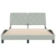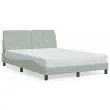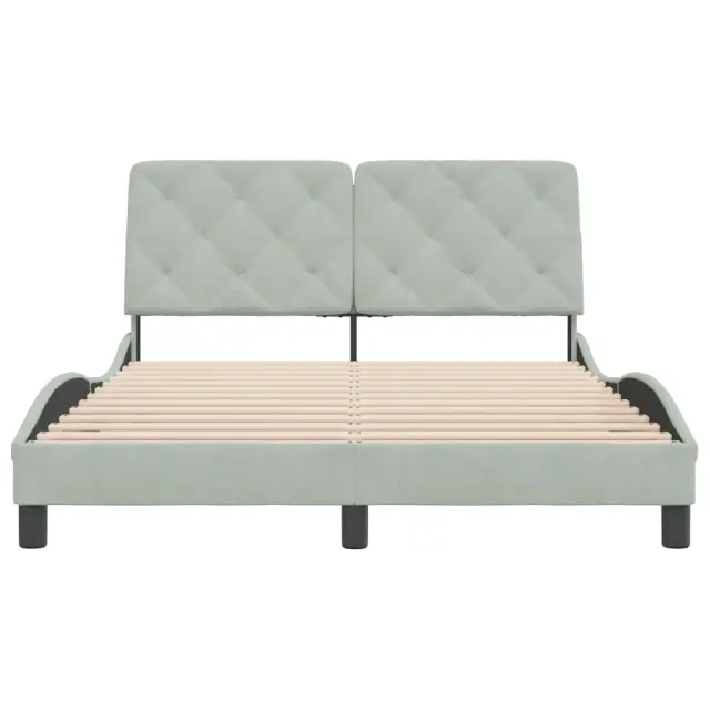 Zagotovite si boljši spanec s tem posteljnim okvirjem z vzglavjem! Je prijeten dodatek za vsako spalnico. Mehak žamet: Žamet je mehka in udobna tkanina, ki je prijetna do kože.Letvice iz vezanega lesa: Letvice iz vezanega lesa omogočajo dobro porazdelitev teže in zagotavljajo, da vzmetnica ostane na mestu ob vsakem zasuku in obračanju med spanjem.Odlična podpora: Vzglavna stranica je napolnjena s peno za izjemno mehkobo in optimalno udobje ter zagotavlja odlično podporo hrbtu, ko sedite v postelji in berete ali gledate televizijo.Priročna zasnova: Vzglavna stranica ima zadrgo za preprosto namestitev, pripenjala na zadnji strani pa se lahko uporabijo za pritrditev LED lučk.Valovita stranica: Valoviti videz posteljnega okvirja je eleganten in prefinjen. Dekorju v vašem domu dodaja sodoben in eleganten pridih ter tako postane osrednja točka spalnice. Dobro je vedeti:Vzmetnica ni priložena tej postelji. Ponujamo različno izbiro ležišč. V naši trgovini si lahko ogledate ustrezne vzmetnice.Posteljni okvir z vzglavjem:Barva: Svetlo sivaMaterial: Žamet (100 % poliester), kovina, trdna borovina, vezan les, inženirski lesCelotne dimenzije: 218 x 145 x 74,5 cm (D x Š x V)Velikost primerne vzmetnice: 140 x 200 cm (Š x D) (vzmetnica ni priložena)Oblazinjeno vzglavje:Barva: Svetlo sivaMaterial: Žamet (100 % poliester)Material polnila: PenaDimenzije: 142 x 6 x 48 cm (D x Š x V)Primerna širina vzmetnice: 140 cmPotrebno sestavljanje: DaPaket vsebuje:1 x Posteljni okvir z vzglavjem1 x Oblazinjeno vzglavje