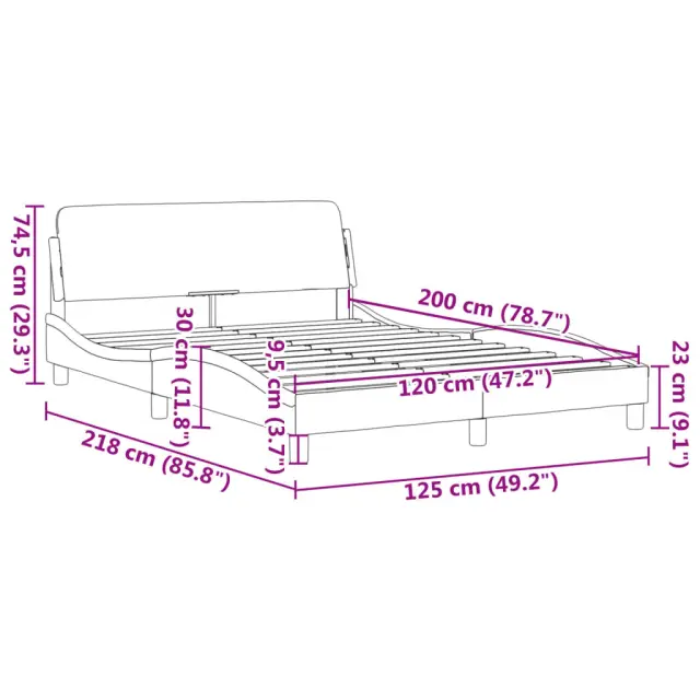 Zagotovite si boljši spanec s tem posteljnim okvirjem z vzglavjem! Je prijeten dodatek za vsako spalnico. Trpežno umetno usnje: Vrhunsko umetno usnje je zelo vzdržljiv material. Je odporno na madeže, zato ga lahko preprosto čistite z vlažno krpo. Gladka površina mu prav tako daje razkošen videz in lepoto pravega usnja.Podporne noge: Postelja je podprta s čvrstimi nogami, ki zagotavljajo njeno stabilnost, varnost in trdnost.Letvice iz vezanega lesa: Letvice iz vezanega lesa omogočajo dobro porazdelitev teže in zagotavljajo, da vzmetnica ostane na mestu ob vsakem zasuku in obračanju med spanjem.Udobna opora: To vzglavje za posteljo vam zagotavlja odlično oporo za hrbet, ko sedite na postelji in berete ali gledate filme.Valovita stranica: Valoviti videz posteljnega okvirja je eleganten in prefinjen. Dekorju v vašem domu dodaja sodoben in eleganten pridih ter tako postane osrednja točka spalnice. Dobro je vedeti:Vzmetnica ni priložena tej postelji. Ponujamo različno izbiro ležišč. V naši trgovini si lahko ogledate ustrezne vzmetnice.Barva: KapučinoMaterial: Umetno usnje (75 % polivinilklorid, 5 % bombaž, 20 % poliester), kovina, trdna borovina, vezan lesCelotne dimenzije: 218 x 125 x 74,5 cm (D x Š x V)Velikost primerne vzmetnice: 120 x 200 cm (Š x D) (vzmetnica ni priložena)Potrebno sestavljanje: Da