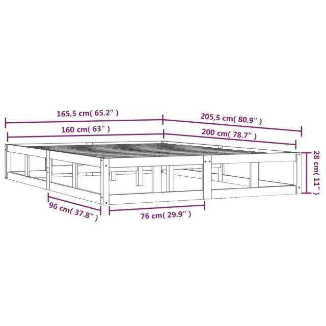 Ustvarite moderno spalnico s tem lesenim posteljnim okvirjem! To je praktičen in dekorativen dodatek za vaše notranje prostore. Vrhunska trdna borovina: Trdna borovina je čudovit naravni material. Borovina ima ravne vzorce, grče pa dajejo materialu njegov značilen, rustikalen videz.Stabilen posteljni okvir: Lesen okvir zagotavlja trdnost in stabilnost.Trdne letvice: Letvice iz vezanega lesa omogočajo dobro porazdelitev teže in zagotavljajo, da vzmetnica ostane na mestu ob vsakem zasuku in obračanju med spanjem. Opomba:Paket vsebuje samo posteljni okvir. Vzmetnica ni priložena. V naši trgovini si lahko ogledate ustrezne vzmetnice.Ta posteljni okvir je primeren za vzmetnico velikosti 160 x 200 cm.Vsakemu izdelku je priložen priročnik za enostavno sestavljanje.Barva: ČrnaMaterial posteljnega okvirja: Trdna borovinaMaterial letvic: Vezan lesCelotne dimenzije: 205,5 x 165,5 x 28 cm (D x Š x V)Velikost primerne vzmetnice: 160 x 200 cm (Š x D) (vzmetnica ni priložena)