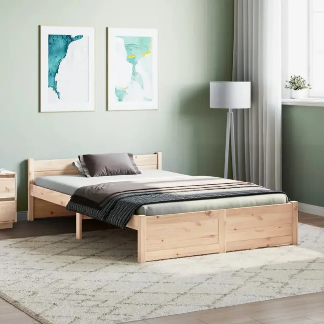 Ustvarite moderno spalnico s tem lesenim posteljnim okvirjem! To je praktičen in dekorativen dodatek za vaše notranje prostore. Vrhunska trdna borovina: Trdna borovina je čudovit naravni material. Borovina ima ravne vzorce, grče pa dajejo materialu njegov značilen, rustikalen videz.Močan posteljni okvir: Lesen okvir zagotavlja trdnost in stabilnost. Letvice iz vezanega lesa omogočajo dobro porazdelitev teže in zagotavljajo, da vzmetnica ostane na mestu ob vsakem zasuku in obračanju med spanjem.Udobno vzglavje: Klasično vzglavje omogoča udoben počitek med branjem ali gledanjem filma. Opomba:Paket vsebuje samo posteljni okvir. Vzmetnica ni priložena. V naši trgovini si lahko ogledate ustrezne vzmetnice.Ta posteljni okvir je primeren za vzmetnico velikosti 135 x 190 cm (4FT Small Double).Material posteljnega okvirja: Trdna borovina (neobdelana)Material letvic: Vezan lesCelotne dimenzije: 195,5 x 140,5 x 51 cm (D x Š x V)Velikost primerne vzmetnice: 135 x 190 cm (Š x D) (4FT6 Double) (vzmetnica ni priložena)Potrebno sestavljanje: DaPaket vsebuje:1 x Posteljni okvir1 x Vzglavje