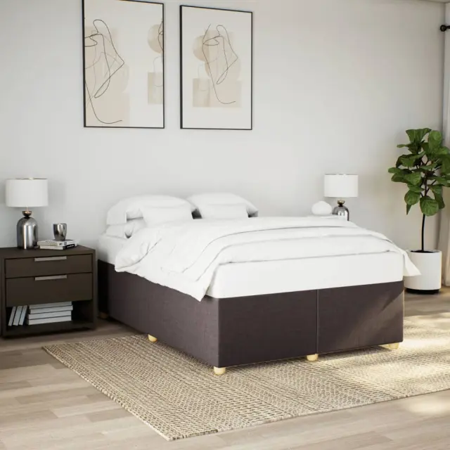 Zagotovite si boljši spanec s tem posteljnim okvirjem! Je prijeten dodatek za vsako spalnico. Mehak in trpežen material: Tkanina iz poliestra združuje mehkobo, zračnost in trpežnost ter vam zagotavlja popolno udobje in prijetnost.Letvice za optimalno podporo: Ta posteljni okvir je opremljen z letvicami, ki zagotavljajo osnovno podporo in zračnost vašega ležišča.Stabilne in vzdržljive noge: Ta postelja je podprta z robustnimi nogami, ki zagotavljajo stabilnost, varnost in trdnost. Dobro je vedeti:Vzmetnica ni priložena tej postelji. Ponujamo različno izbiro ležišč. V naši trgovini si lahko ogledate ustrezne vzmetnice.Barva: Temno rjavaMaterial: Tkanina (100 % poliester), vezan les, inženirski les, trdna borovinaDimenzije: 190 x 140 x 46 cm (D x Š x V)Velikost primerne vzmetnice: 140 x 190 cm (Š x D) (vzmetnica ni priložena)Utrjene plastične nogicePodporne noge iz trdnega borovega lesaPotrebno sestavljanje: Da