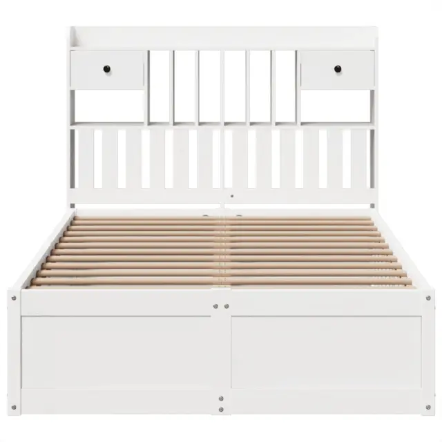 S tem lesenim posteljnim okvirjem lahko uživate v odličnem spancu! To je praktičen in dekorativen dodatek za vaše notranje prostore. Trdna borovina: Trdna borovina je čudovit naravni material. Borovina ima ravne vzorce, grče pa dajejo materialu njegov značilen, rustikalen videz.Močan posteljni okvir: Lesen okvir zagotavlja trdnost in stabilnost. Letvice iz vezanega lesa omogočajo dobro porazdelitev teže in zagotavljajo, da vzmetnica ostane na mestu ob vsakem zasuku in obračanju med spanjem.Funkcionalno vzglavje in podnožje: Z vzglavjem lesene postelje lahko ohranite vzmetnico na mestu. Poleg tega vzglavje zagotavlja odlično oporo hrbtu, ko sedite v postelji in berete ali gledate televizijo.Veliko prostora za shranjevanje: To elegantno vzglavje ima 3 priročne predelke in 3 predale, ki nudijo dovolj prostora za shranjevanje, da so vse vaše nočne potrebščine na dosegu roke. Dobro je vedeti:Vzmetnica ni priložena tej postelji. Ponujamo različno izbiro ležišč. V naši trgovini si lahko ogledate ustrezne vzmetnice.Barva: BelaMaterial posteljnega okvirja: Trdna borovinaMaterial letvic: Vezan lesCelotne dimenzije: 219,5 x 141,5 x 110 cm (D x Š x V)Velikost primerne vzmetnice: 135 x 190 cm (Š x D) (vzmetnica ni priložena)Dimenzije vzglavja: 141 x 23 x 110 cm (D x Š x V)S policami za shranjevanjePotrebno sestavljanje: DaPaket vsebuje:1 x Posteljni okvir1 x Vzglavje