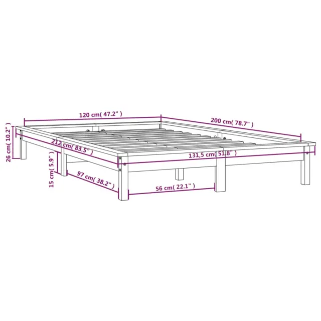 Dodajte svoji spalnici moderen pridih s tem klasičnim lesenim posteljnim okvirjem! To je praktičen in dekorativen dodatek za vaše notranje prostore. Trdna borovina: Trdna borovina je čudovit naravni material. Borovina ima ravne vzorce, grče pa dajejo materialu njegov značilen, rustikalen videz.Močan in stabilen okvir: Lesen okvir omarice zagotavlja trdnost in stabilnost.Trdne letvice: Letvice iz vezanega lesa omogočajo dobro porazdelitev teže in zagotavljajo, da vzmetnica ostane na mestu ob vsakem zasuku in obračanju med spanjem. Opomba:Paket vsebuje samo posteljni okvir. Vzmetnica ni priložena. V naši trgovini si lahko ogledate ustrezne vzmetnice.Ta posteljni okvir je primeren za vzmetnico velikosti 120 x 200 cm.Vsakemu izdelku je priložen priročnik za enostavno sestavljanje.Barva: Siva Material: Trdna borovina Celotne dimenzije: 212 x 131,5 x 26 cm (D x Š x V) Velikost primerne vzmetnice: 120 x 200 cm (Š x D) (vzmetnica ni priložena)