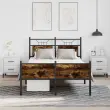 Zagotovite si boljši spanec s tem posteljnim okvirjem! Je prijeten dodatek za vsako spalnico. Stabilen in dolgotrajen okvir: Jeklo je močno, stabilno in trpežno, zato je idealna izbira za številne aplikacije, od proizvodnje pohištva do gradbeništva.Funkcionalno vzglavje in podnožje: Vzglavje in podnožje posteljnega dna ohranjata ležišče na mestu. Poleg tega vzglavje zagotavlja odlično oporo hrbtu, ko sedite v postelji in berete ali gledate televizijo.Dodaten prostor za shranjevanje: Za udobje ima posteljni podstavek pod seboj dodaten prostor, v katerem lahko shranite škatle za shranjevanje, ki niso vidne.Podnožje z letvami za optimalno podporo: Kovinski posteljni okvir je opremljen z letvenim dnom, ki zagotavlja oporo in zračnost ležišča. Dobro je vedeti:Vzmetnica ni priložena tej postelji. Ponujamo različno izbiro ležišč. V naši trgovini si lahko ogledate ustrezne vzmetnice.Barva: Dimljeni hrastMaterial: Inženirski les in jekloCelotne dimenzije: 196 x 126 x 91,5 cm (D x Š x V)Višina prostora pod posteljo: 27 cmVelikost primerne vzmetnice: 120 x 190 cm (Š x D) (vzmetnica ni priložena)Z vzglavjem in podnožjemPotrebno sestavljanje: Da