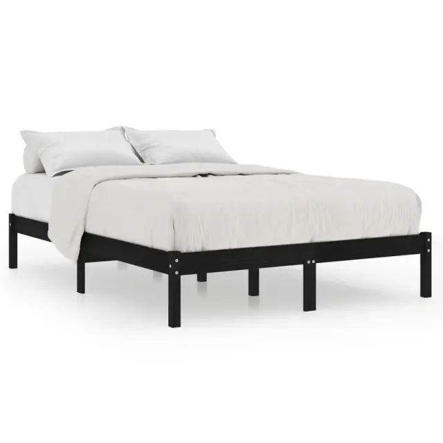 Posteljni okvir - Dvoposteljna postelja - Zakonska postelja črn iz trdne borovine 200x200 cm-J4888