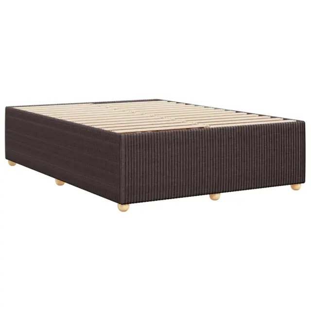 Zagotovite si boljši spanec s tem posteljnim okvirjem! Je prijeten dodatek za vsako spalnico. Mehak in trpežen material: Tkanina iz poliestra združuje mehkobo, zračnost in trpežnost ter vam zagotavlja popolno udobje in prijetnost.Letvice za optimalno podporo: Ta posteljni okvir je opremljen z letvicami, ki zagotavljajo osnovno podporo in zračnost vašega ležišča.Stabilne in vzdržljive noge: Ta postelja je podprta z robustnimi nogami, ki zagotavljajo stabilnost, varnost in trdnost. Dobro je vedeti:Vzmetnica ni priložena tej postelji. Ponujamo različno izbiro ležišč. V naši trgovini si lahko ogledate ustrezne vzmetnice.Barva: Temno rjavaMaterial: Tkanina (100 % poliester), vezan les, inženirski les, trdna borovinaDimenzije: 190 x 140 x 46 cm (D x Š x V)Velikost primerne vzmetnice: 140 x 190 cm (Š x D) (vzmetnica ni priložena)Utrjene plastične nogicePodporne noge iz trdnega borovega lesaPotrebno sestavljanje: Da