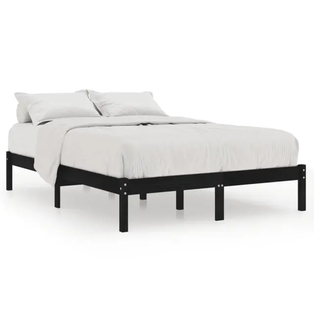 Posteljni okvir - Dvoposteljna postelja - Zakonska postelja črn iz trdnega lesa 135x190 cm-J14086