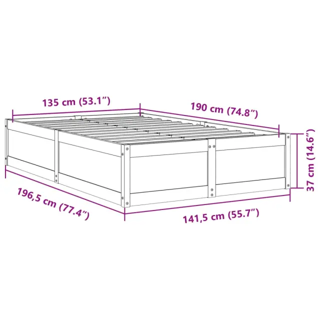 Dodajte svoji spalnici moderen pridih s tem posteljnim okvirjem! Je praktičen in dekorativen dodatek vašemu bivalnemu prostoru. Stabilen in dolgotrajen okvir: Trdna borovina je znana po svoji trdnosti in trajnosti. Ravni vzorci in značilni vozli prispevajo k njenemu rustikalnemu čaru.Letvice iz vezanega lesa: Letvice iz vezanega lesa omogočajo dobro porazdelitev teže in zagotavljajo, da vzmetnica ostane na mestu ob vsakem zasuku in obračanju med spanjem.Moderna zasnova: Svojim notranjim prostorom dodajte moderen stil! Moderen stil notranjih prostorov vključuje čiste linije, minimalističen videz in naravno svetlobo. Dobro je vedeti:Vzmetnica ni priložena tej postelji. Ponujamo različno izbiro ležišč. V naši trgovini si lahko ogledate ustrezne vzmetnice.Barva: Voščeno rjavaMaterial: Trdna borovinaMaterial letvic: Vezan lesCelotne dimenzije: 196,5 x 141,5 x 37 cm (D x Š x V)Velikost primerne vzmetnice: 135 x 190 cm (Š x D) (vzmetnica ni priložena)Potrebno sestavljanje: Da
