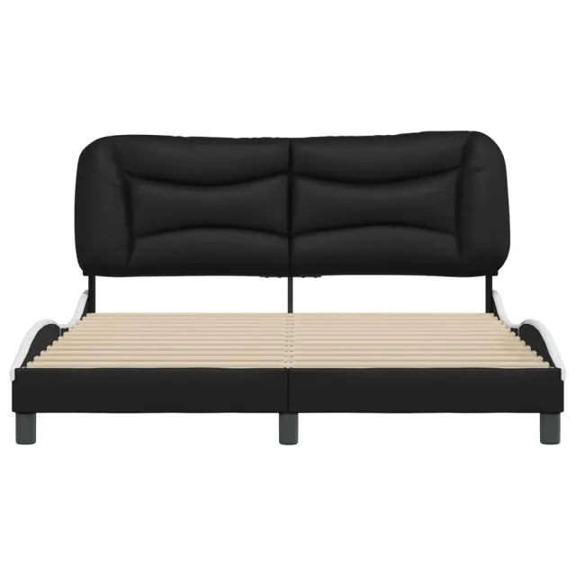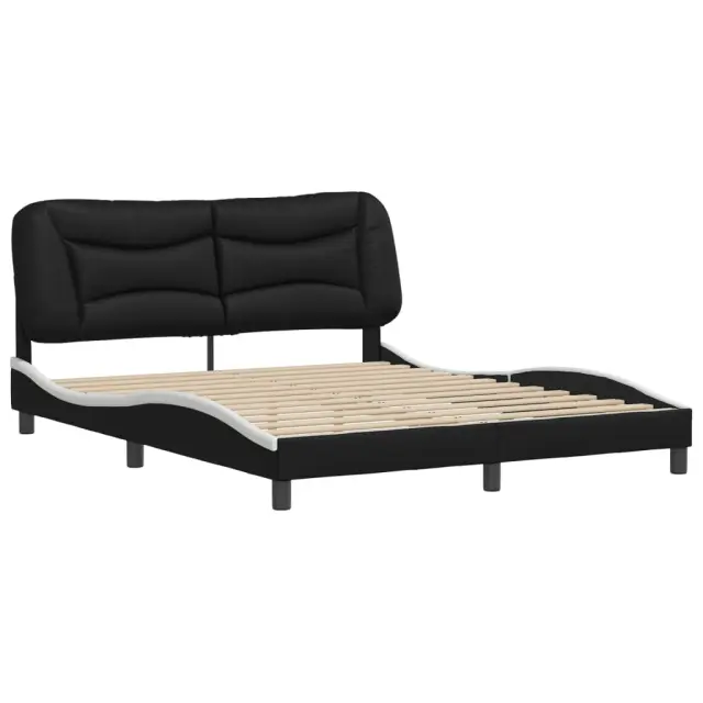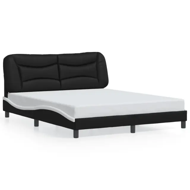 Zagotovite si boljši spanec s tem posteljnim okvirjem z vzglavjem! Je prijeten dodatek za vsako spalnico. Trpežno umetno usnje: Vrhunsko umetno usnje je zelo vzdržljiv material. Je odporno na madeže, zato ga lahko preprosto čistite z vlažno krpo. Gladka površina mu prav tako daje razkošen videz in lepoto pravega usnja.Letvice iz vezanega lesa: Letvice iz vezanega lesa omogočajo dobro porazdelitev teže in zagotavljajo, da vzmetnica ostane na mestu ob vsakem zasuku in obračanju med spanjem.Odlična podpora: Vzglavna stranica je napolnjena s PP vlakni za izjemno mehkobo in optimalno udobje ter zagotavlja odlično podporo hrbtu, ko sedite v postelji in berete ali gledate televizijo.Valovita stranica: Valoviti videz posteljnega okvirja je eleganten in prefinjen. Dekorju v vašem domu dodaja sodoben in eleganten pridih ter tako postane osrednja točka spalnice. Dobro je vedeti:Vzmetnica ni priložena tej postelji. Ponujamo različno izbiro ležišč. V naši trgovini si lahko ogledate ustrezne vzmetnice.Posteljni okvir z vzglavjem:Barva: Črna in belaMaterial: Umetno usnje (75 % polivinilklorid, 5 % bombaž, 20 % poliester), kovina, trdna borovina, vezan lesCelotne dimenzije: 218 x 165 x 74,5 cm (D x Š x V)Velikost primerne vzmetnice: 160 x 200 cm (Š x D) (vzmetnica ni priložena)Oblazinjeno vzglavje:Barva: ČrnaMaterial: Umetno usnje (75 % polivinilklorid, 5 % bombaž, 20 % poliester)Material polnila: PP vlaknaDimenzije: 170 x 15 x 48 cm (D x Š x V)Primerna širina vzmetnice: 160 cmPotrebno sestavljanje: DaPaket vsebuje:1 x Posteljni okvir z vzglavjem1 x Oblazinjeno vzglavje